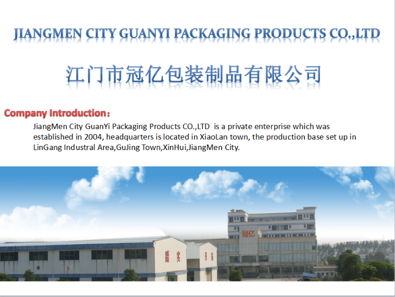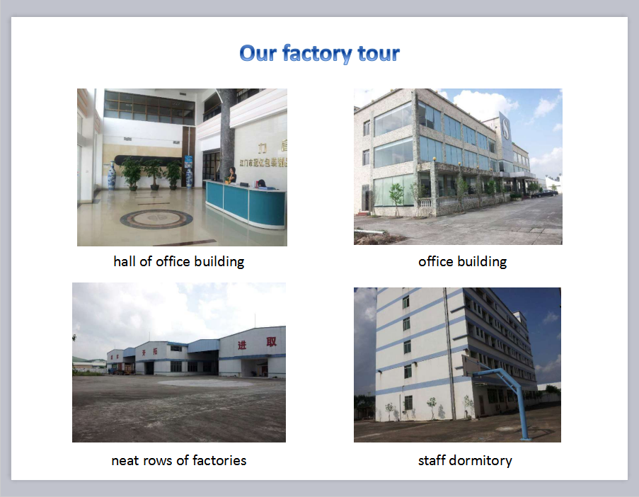 Till 2011, we bought 30000mm land at LinGang Industial Area,GuJing Town,XinHui,JjiangMen City,GuangDong,with 15000mm building of plant,office and dormitory.