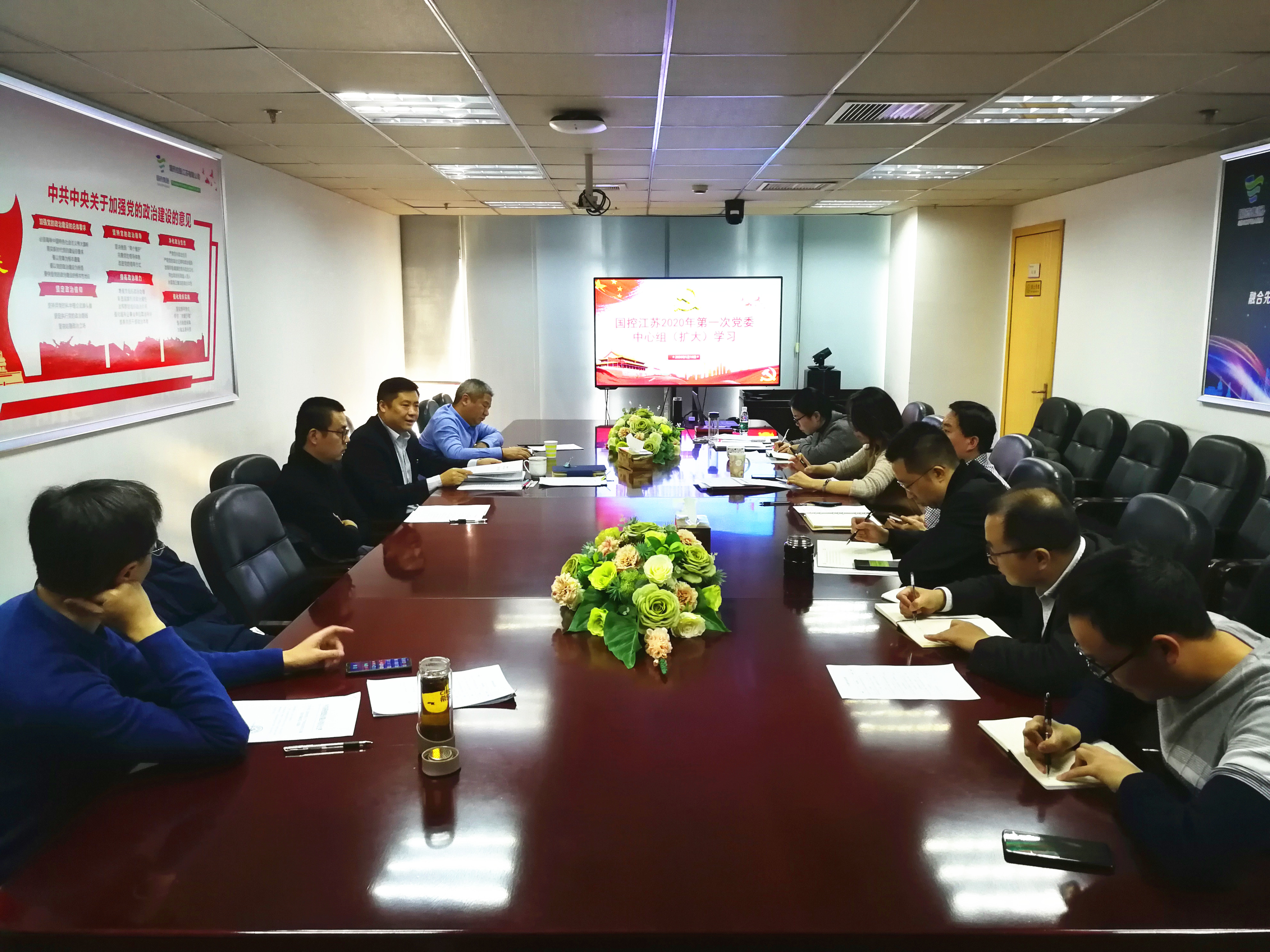 1月19日,国控江苏开展2020年第一次党委理论中心组(扩大)学习,会议由党委书记胡勇主持,公司党政班子成员、纪委委员、团委书记参加会议。