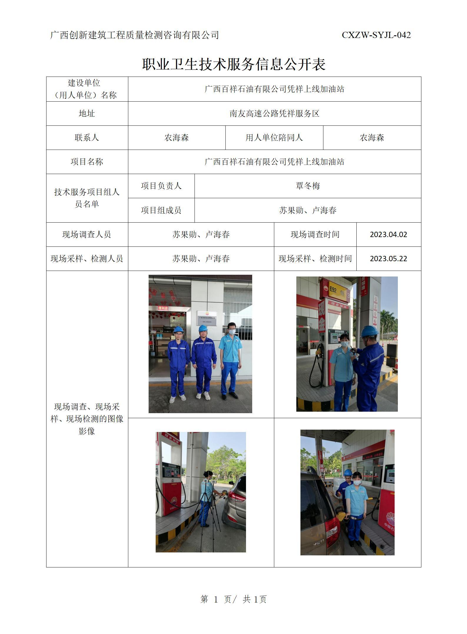 【职业卫生信息公开】广西百祥石油有限公司凭祥上线加油站