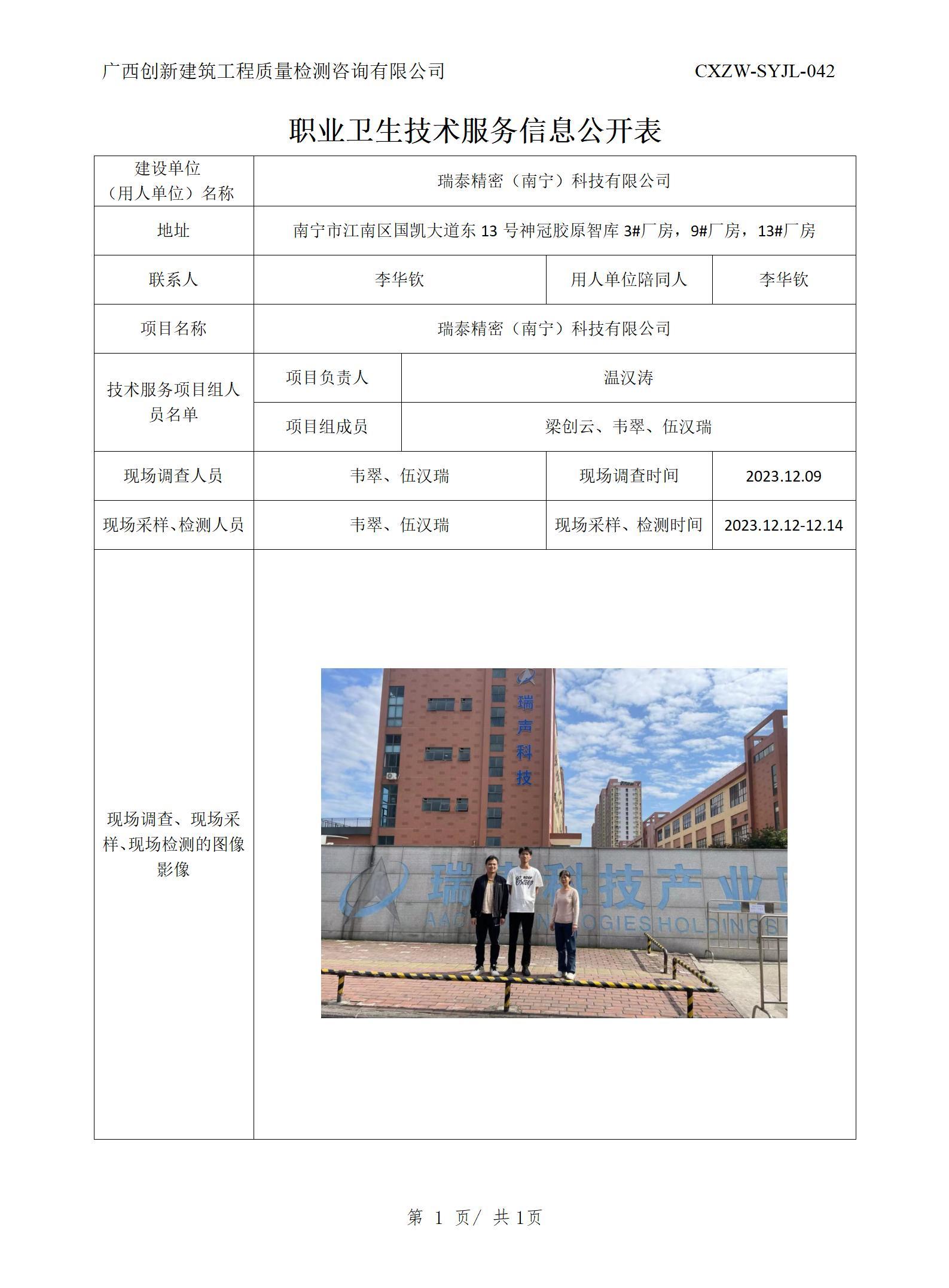【职业卫生信息公开】南宁科顺建筑材料有限公司