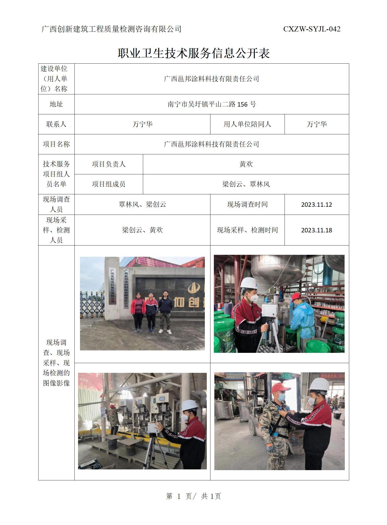 【职业卫生信息公开】广西壮美板业有限公司