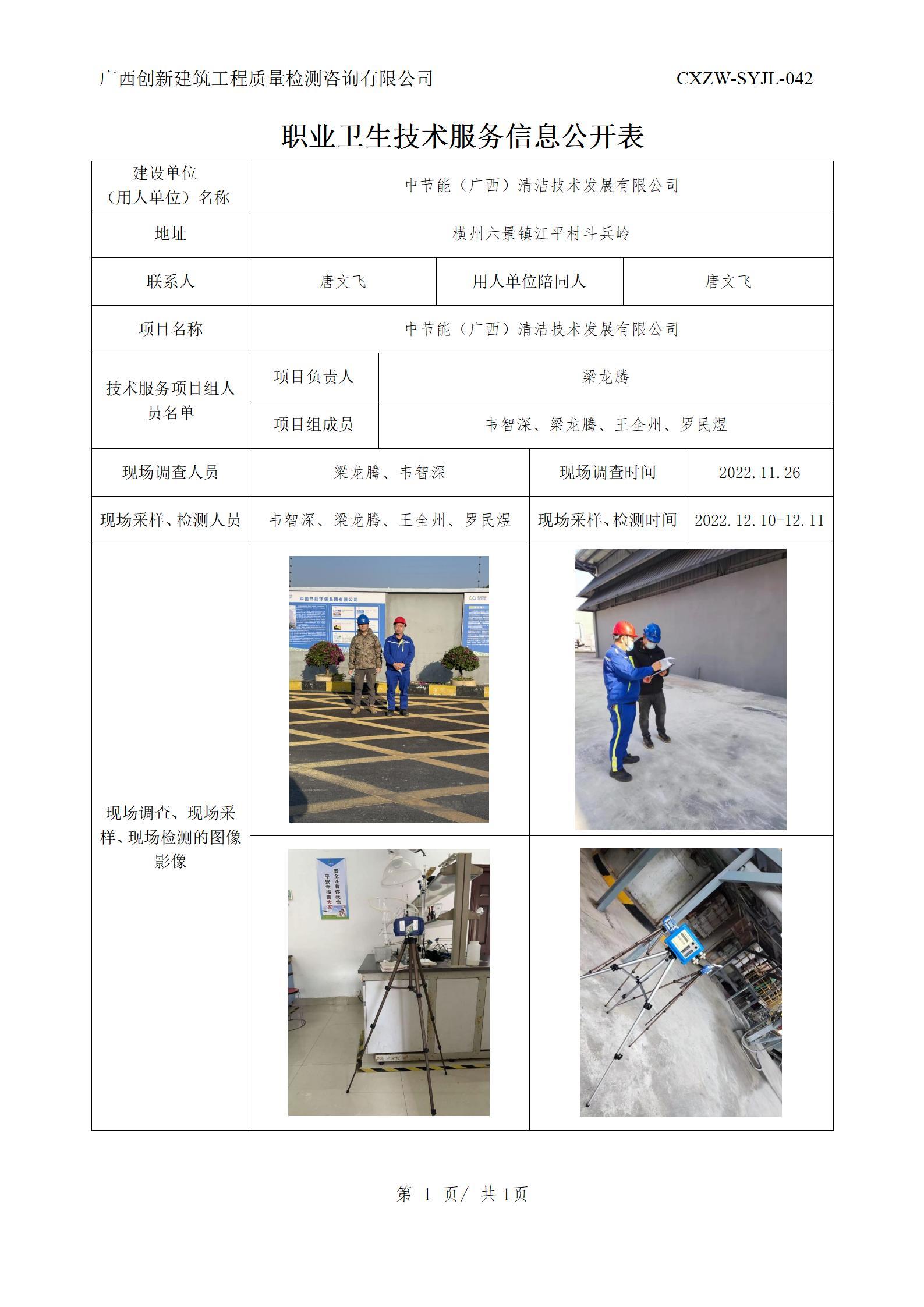 【职业卫生信息公开】中节能(广西)清洁技术发展有限公司