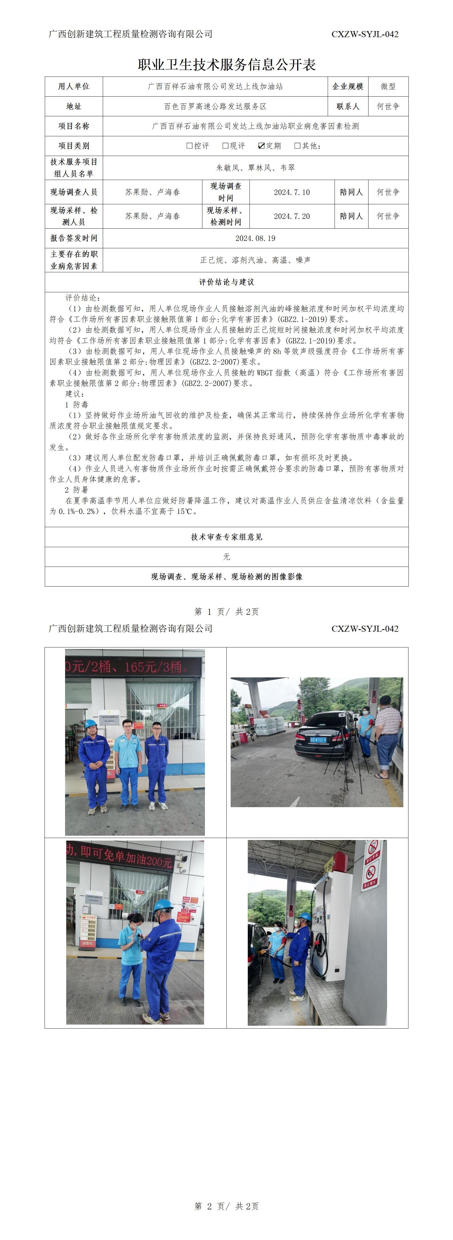 职业卫生信息公开-广西百祥石油有限公司发达下线加油站