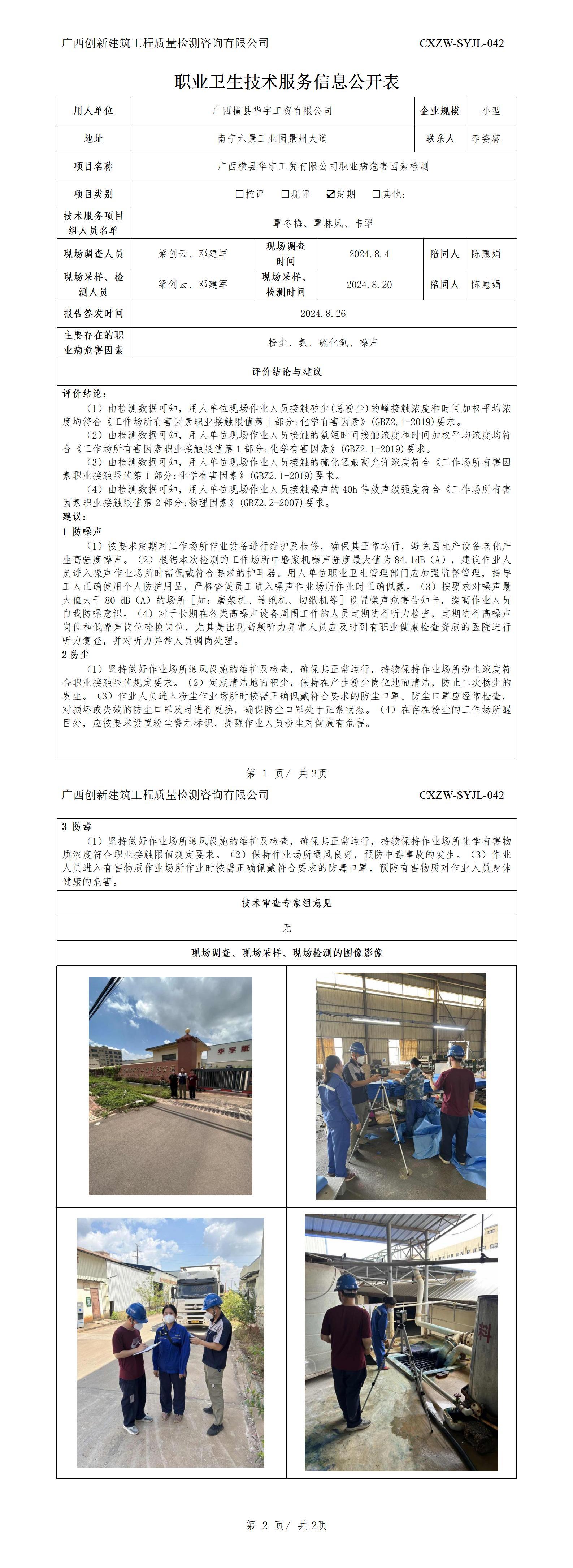 广西翔嵘铝业科技有限公司职业卫生技术服务信息公开表