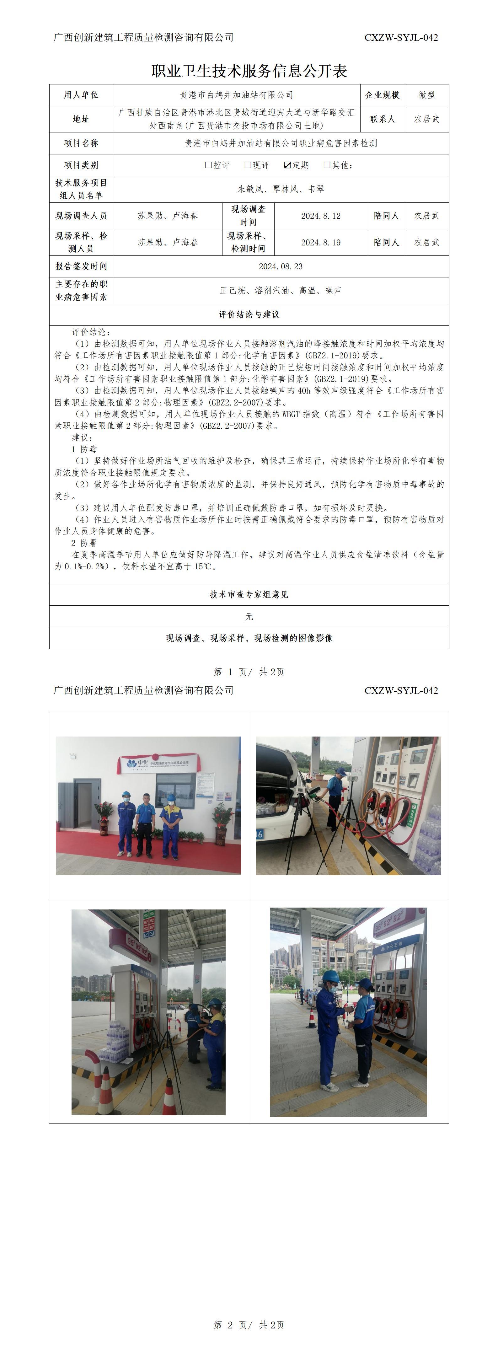 职业卫生信息公开-广西中民交投新能源有限公司南宁火车东站便捷加油站