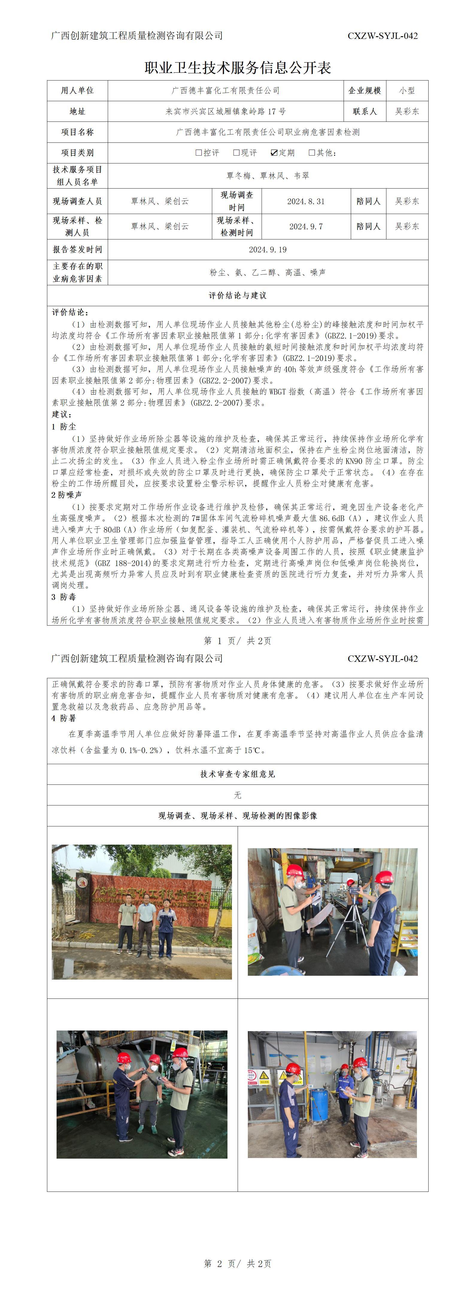 职业卫生信息公开-南宁汉和生物科技股份有限公司