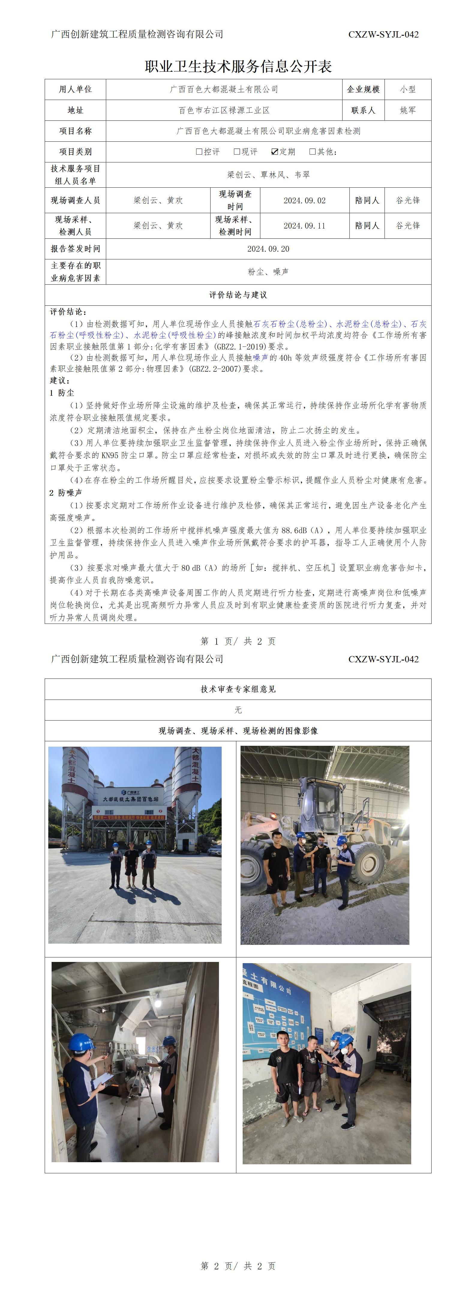 广西大生新能源科技有限公司职业卫生技术服务信息公开表