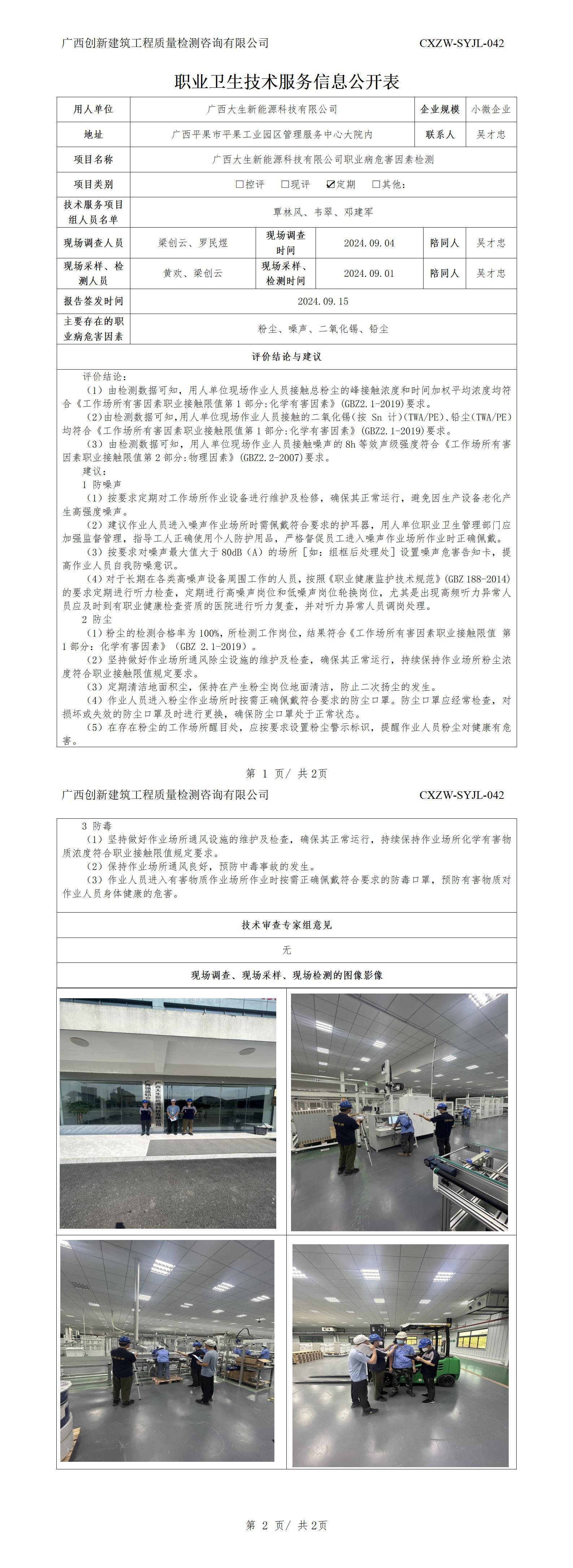 广西金丝鸟农化有限公司-职业卫生技术服务信息公开表