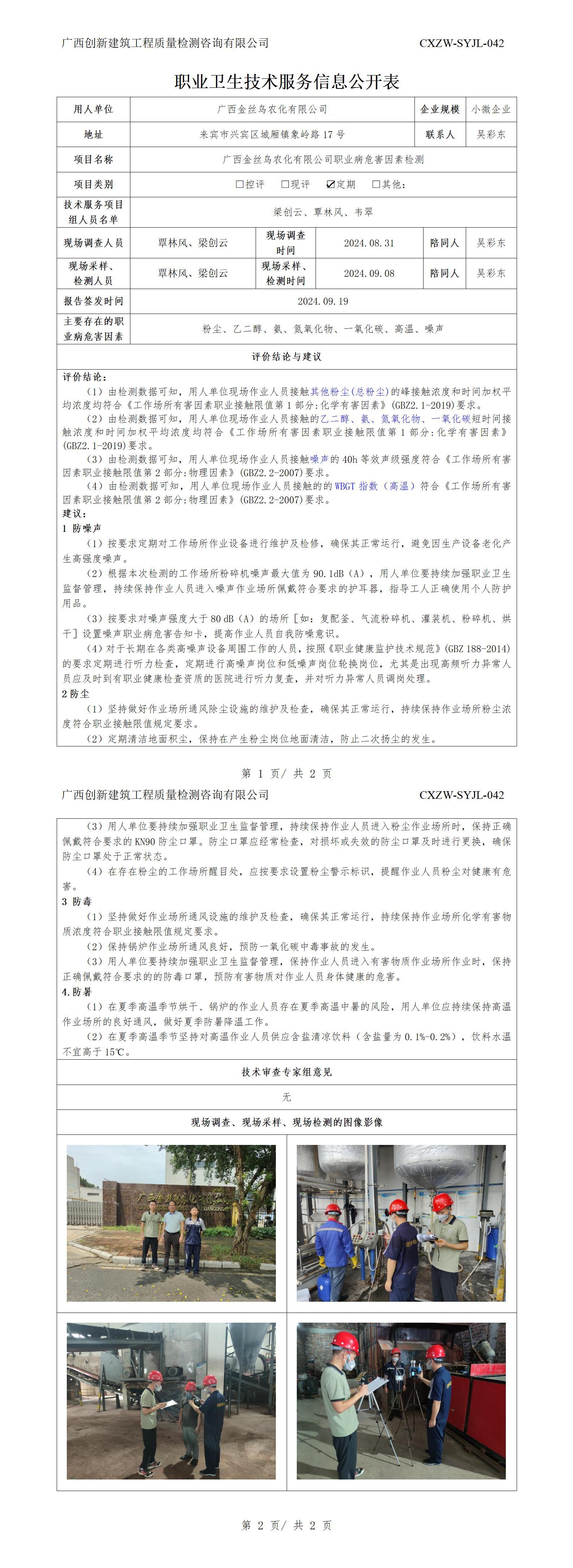 广西大生新能源科技有限公司职业卫生技术服务信息公开表