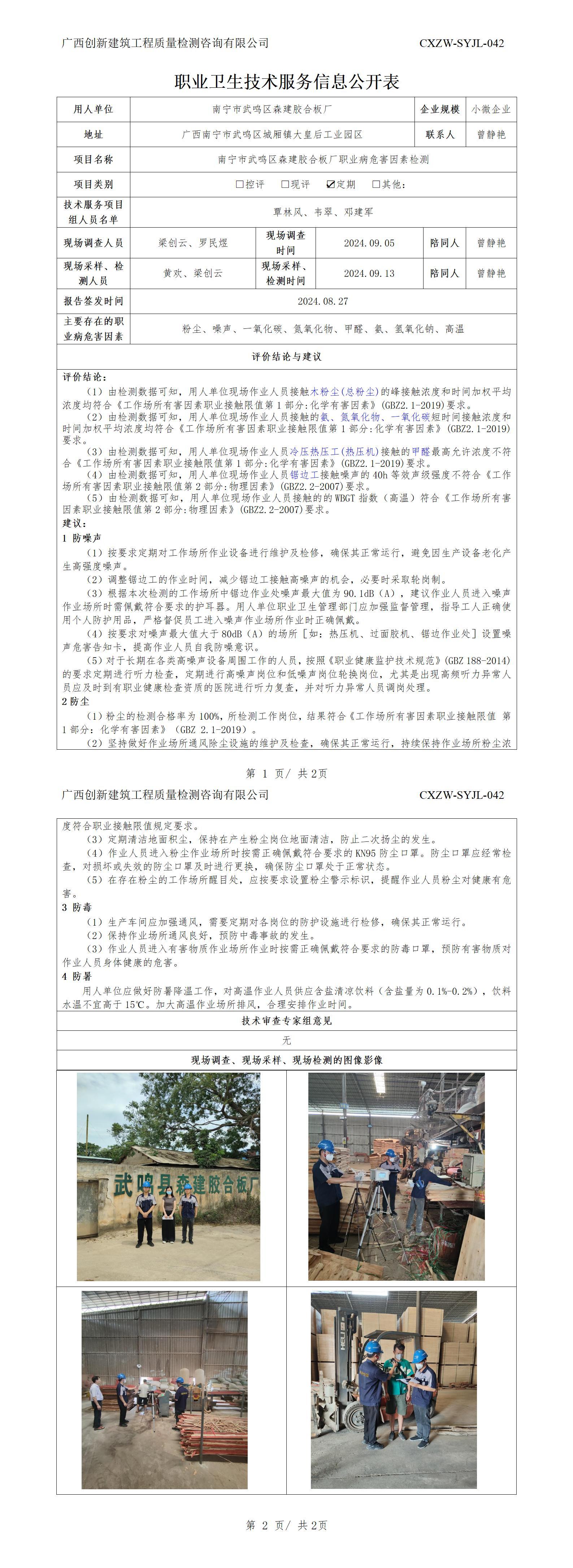 钦州海维饲料有限公司-职业卫生技术服务信息公开表