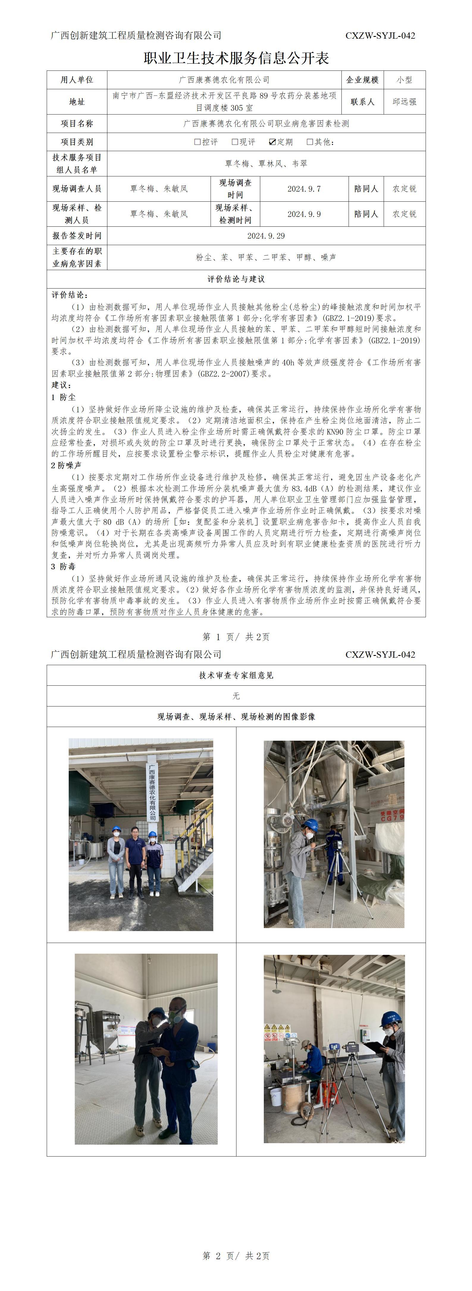 【职业卫生信息公开】广西农喜作物科学有限公司
