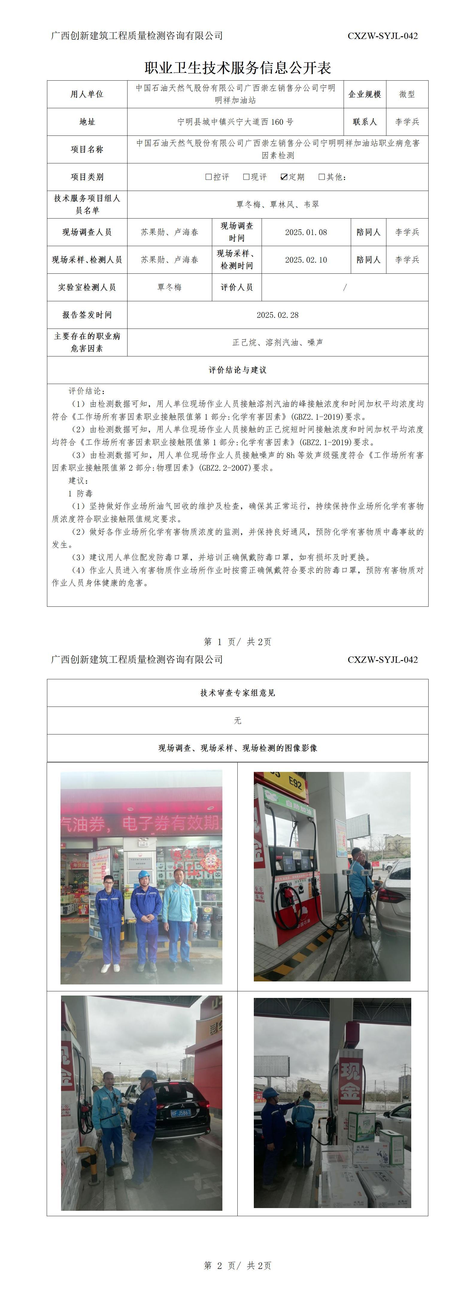 职业卫生信息公开-中国石油天然气股份有限公司广西崇左销售分公司宁明顺风加油站