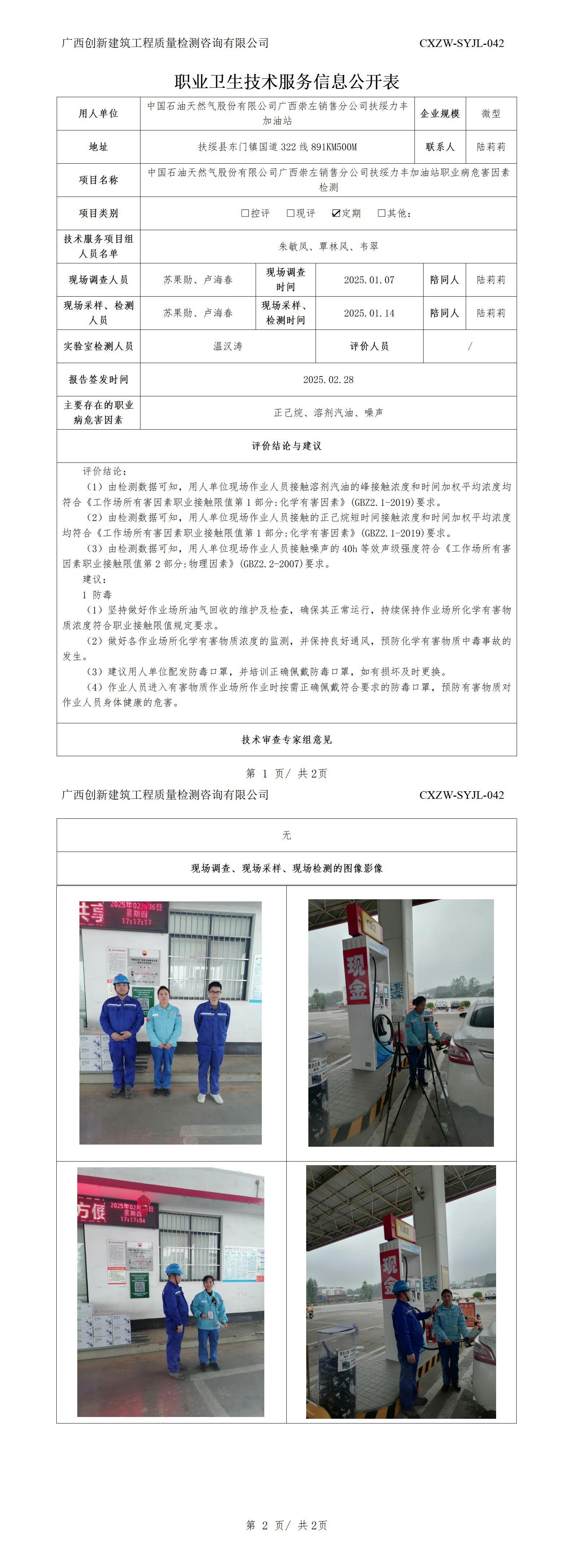 职业卫生信息公开:中国石油天然气股份有限公司广西崇左销售分公司扶绥疆门加油站