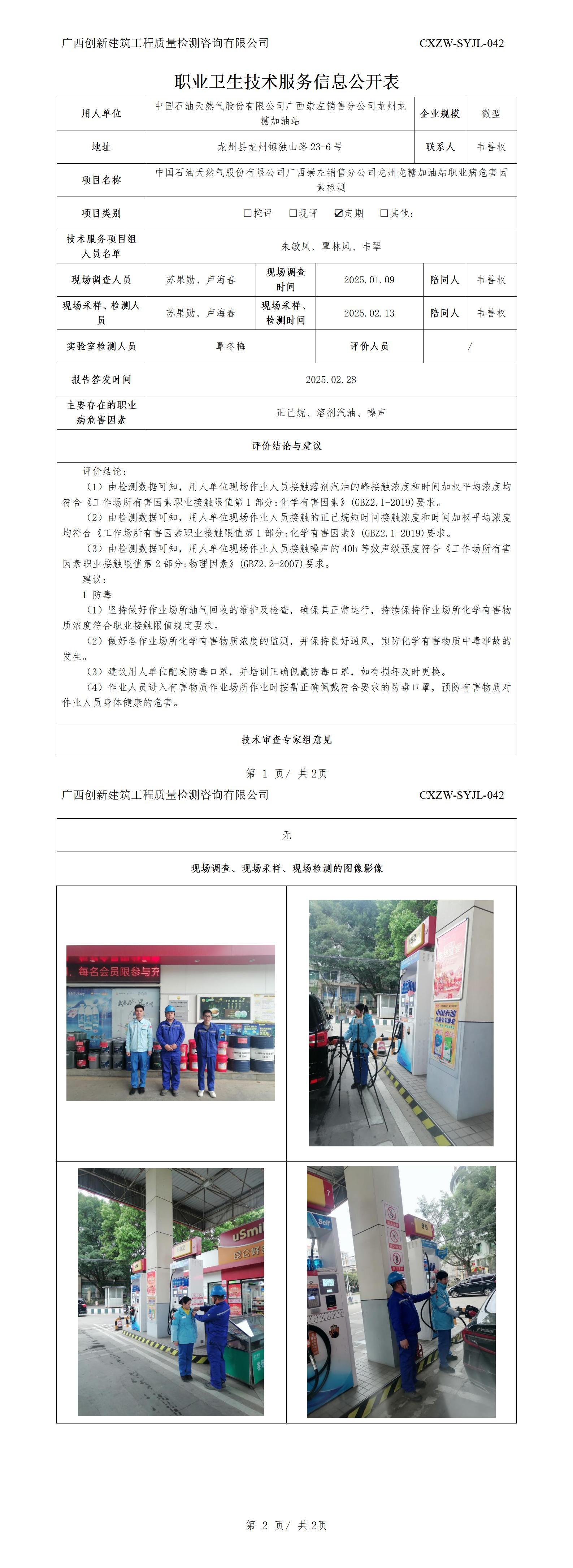 职业卫生信息公开:中国石油天然气股份有限公司广西崇左销售分公司龙州客运加油站