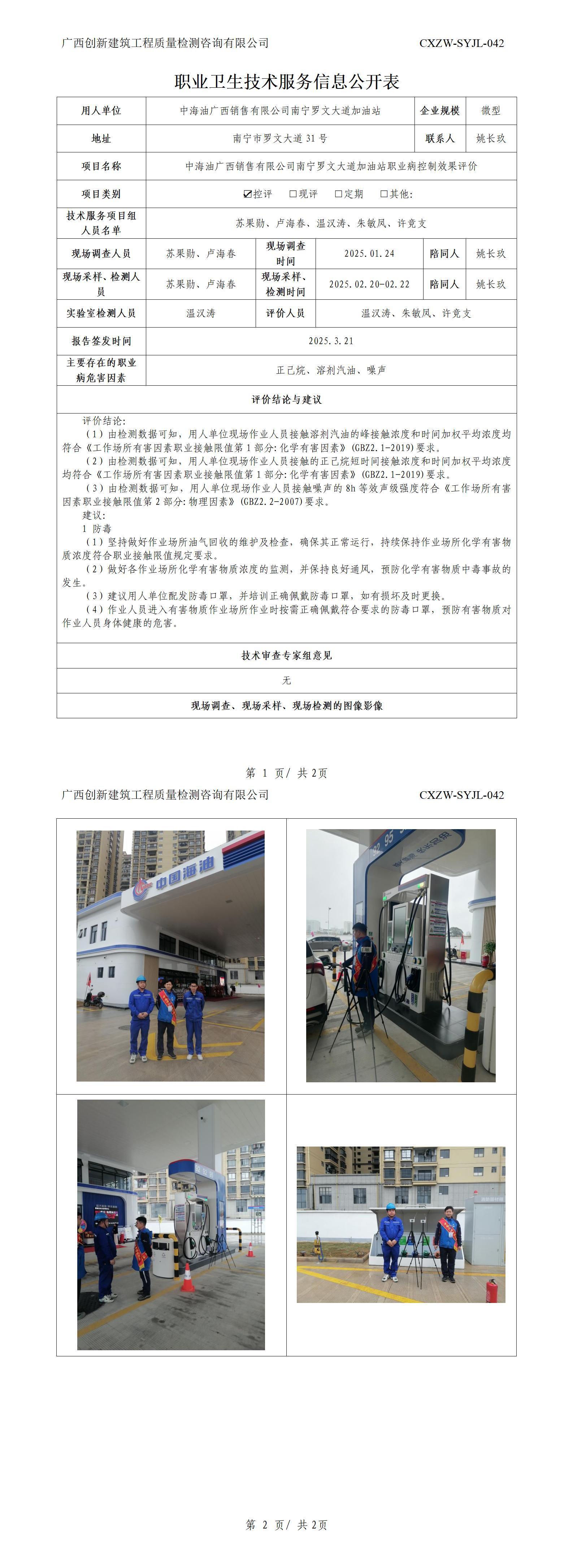 职业卫生信息公开-中海油广西销售有限公司北海市银滩综合能源站