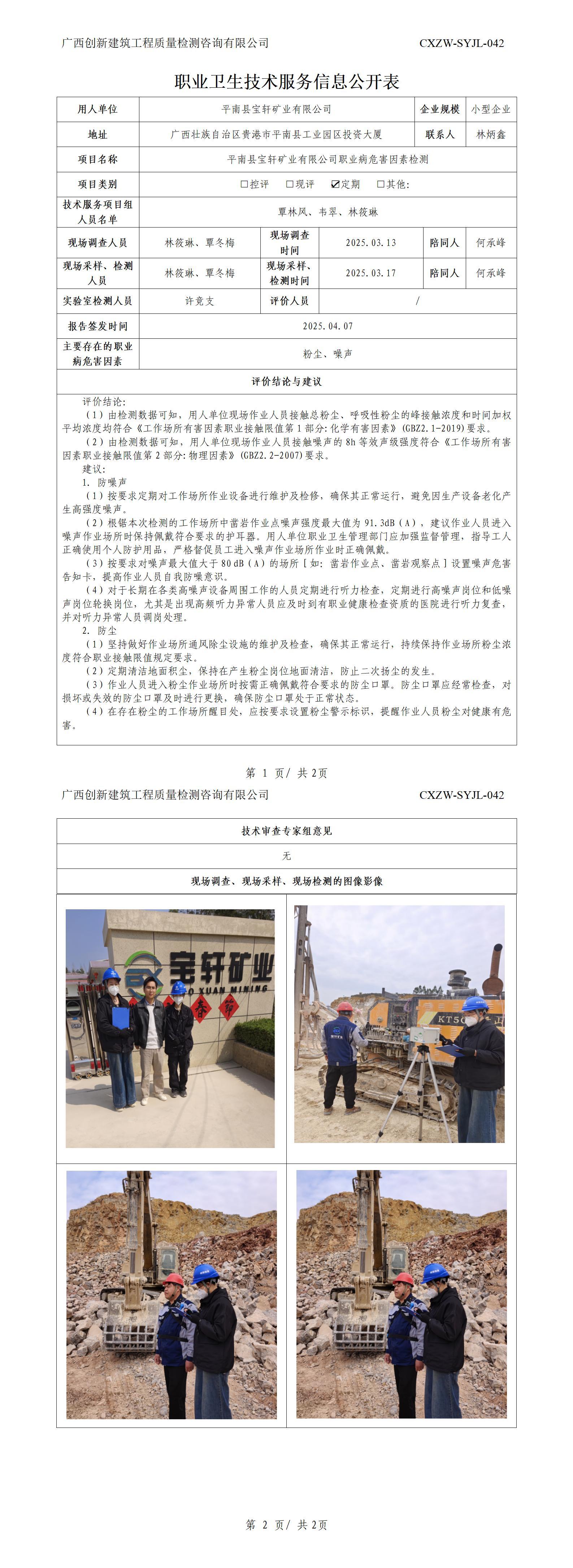 平南县弘祥矿业有限公司检测报告职业卫生技术服务信息公开表