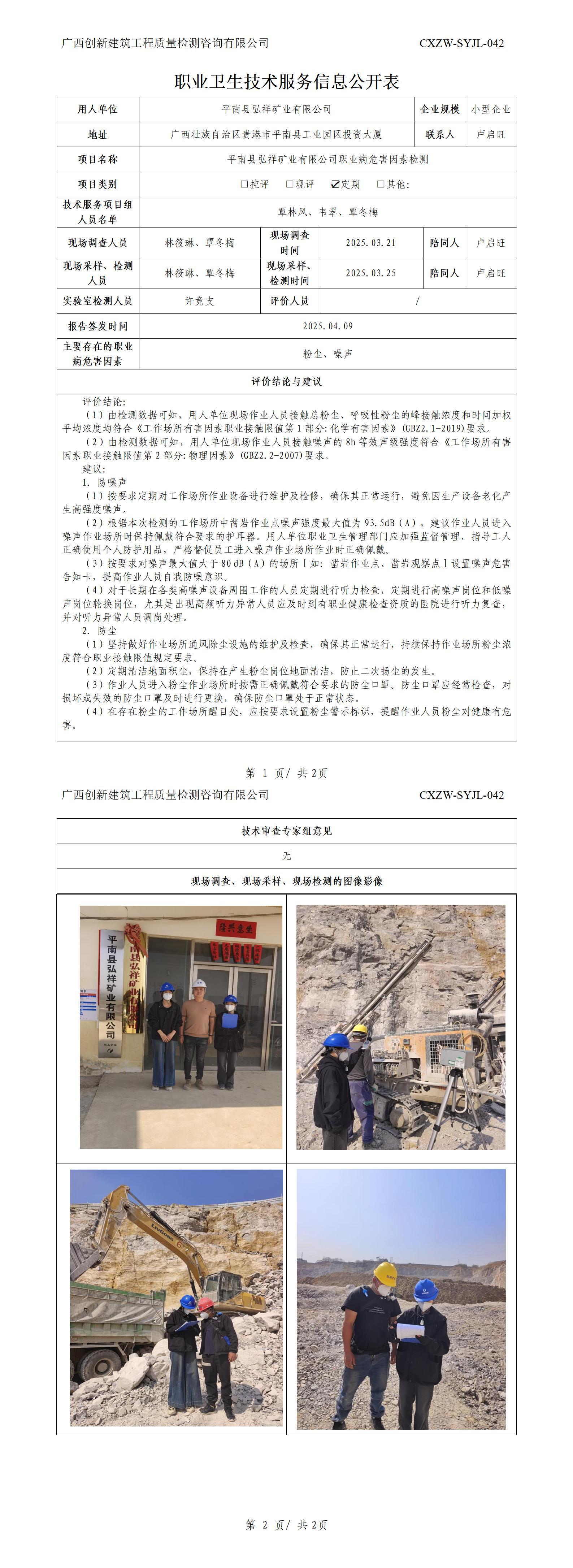 平南县宝轩矿业有限公司检测报告职业卫生技术服务信息公开表