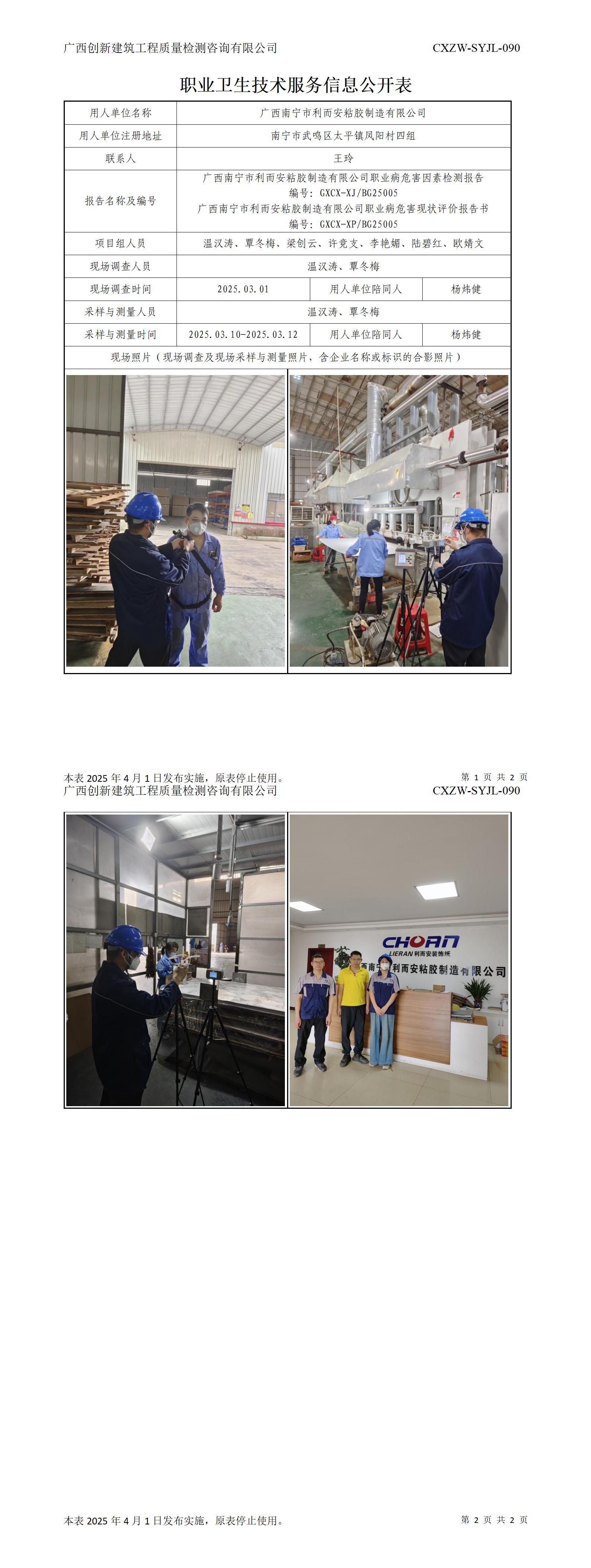 广西扶南东亚糖业有限公司检测报告-职业卫生技术服务信息公开表