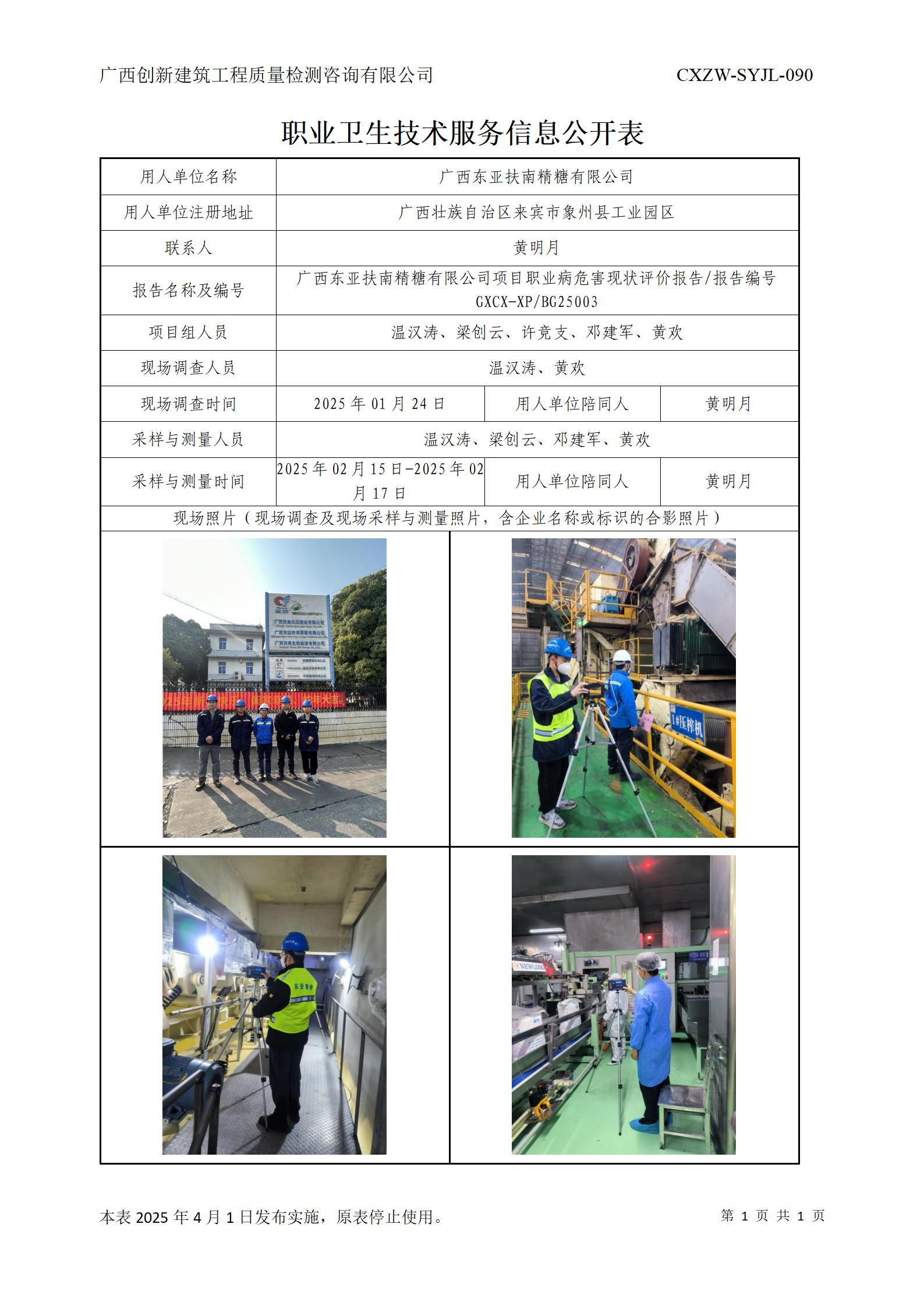广西扶南生物能源有限公司-职业卫生技术服务信息公开表