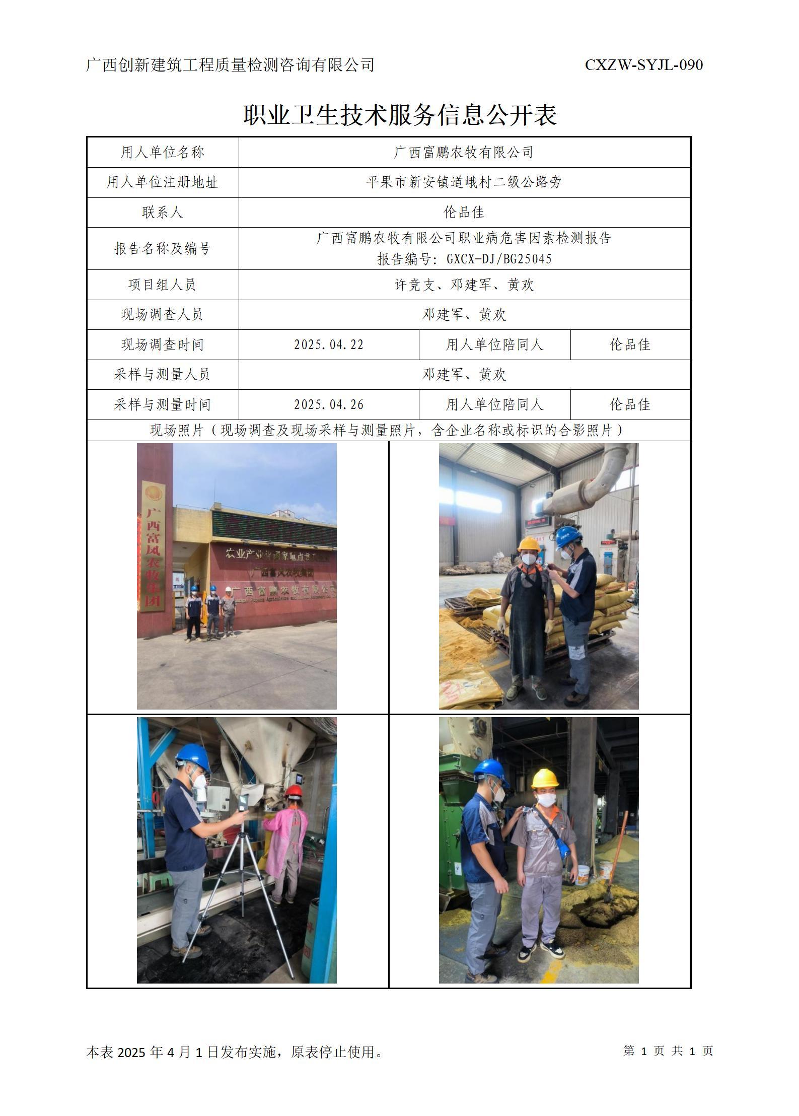 广西扶南生物能源有限公司-职业卫生技术服务信息公开表