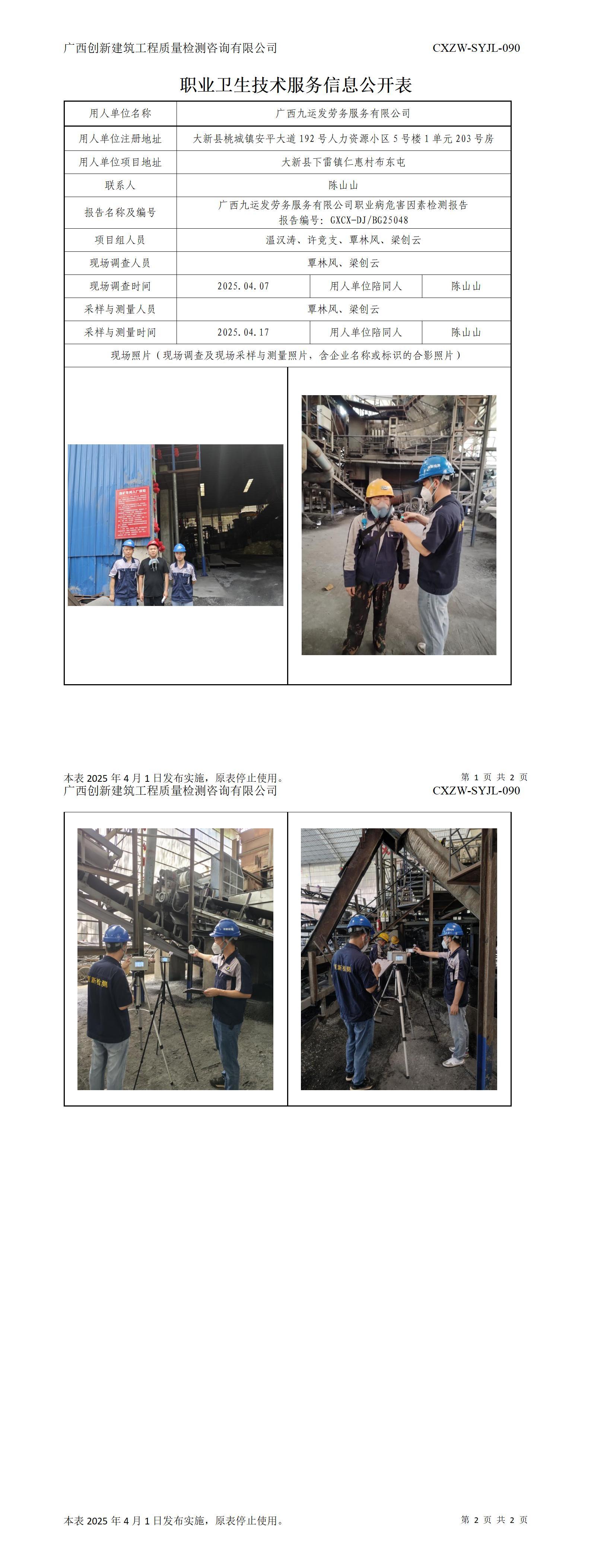 广西金丰泰矿业有限公司-职业卫生技术服务信息公开表