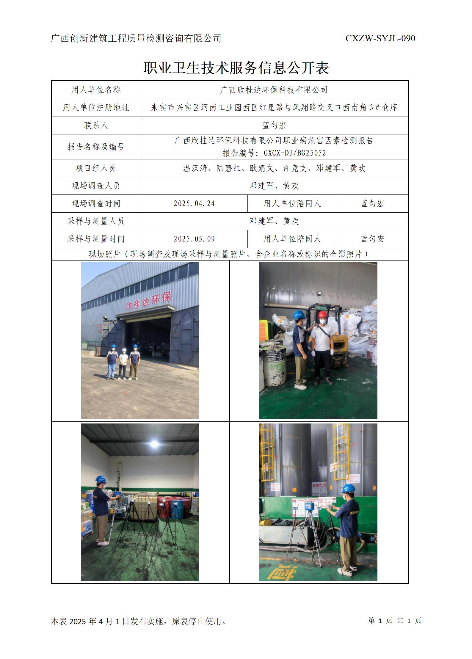 广西循复再生资源有限公司-职业卫生技术服务信息公开表