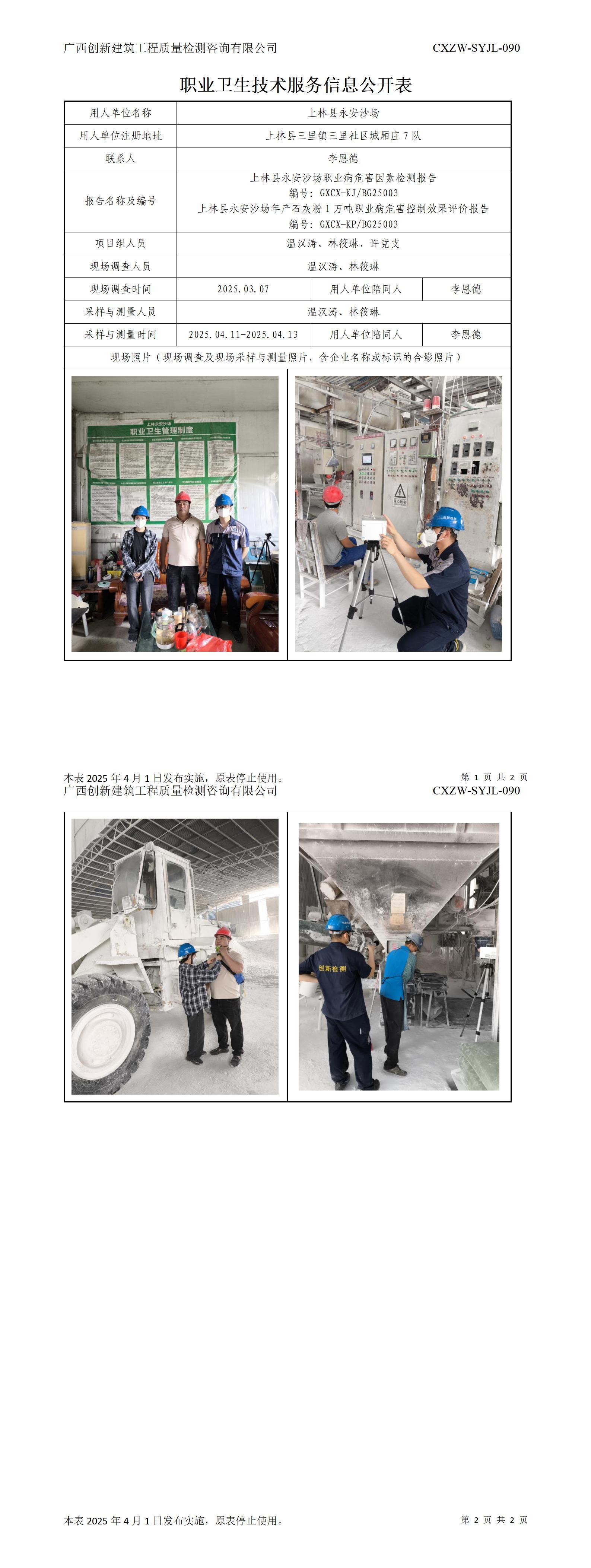上林县虎山钙业有限公司职业卫生技术服务信息公开表