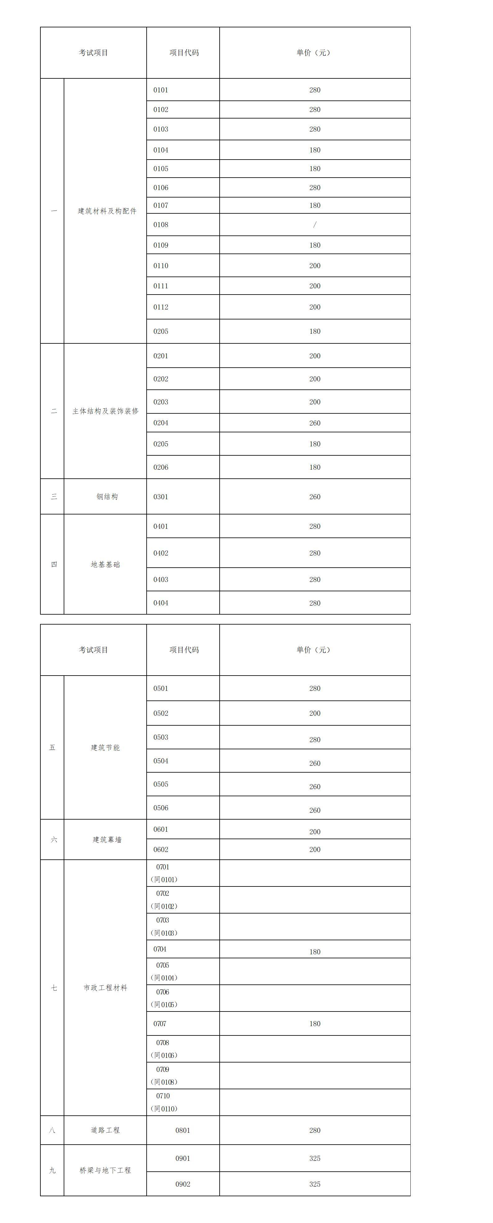 广西建设工程质量检测人员实操测试收费标准(创新测试点)