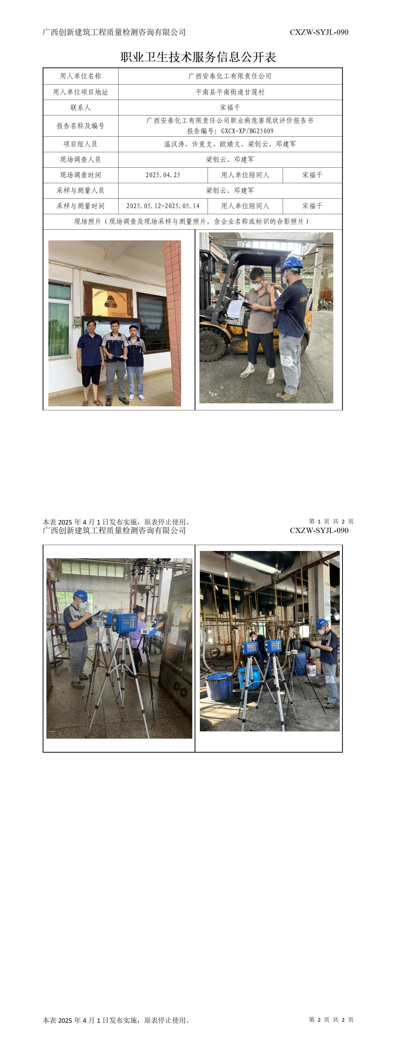 广西皖维生物质科技有限公司-职业卫生技术服务信息公开表