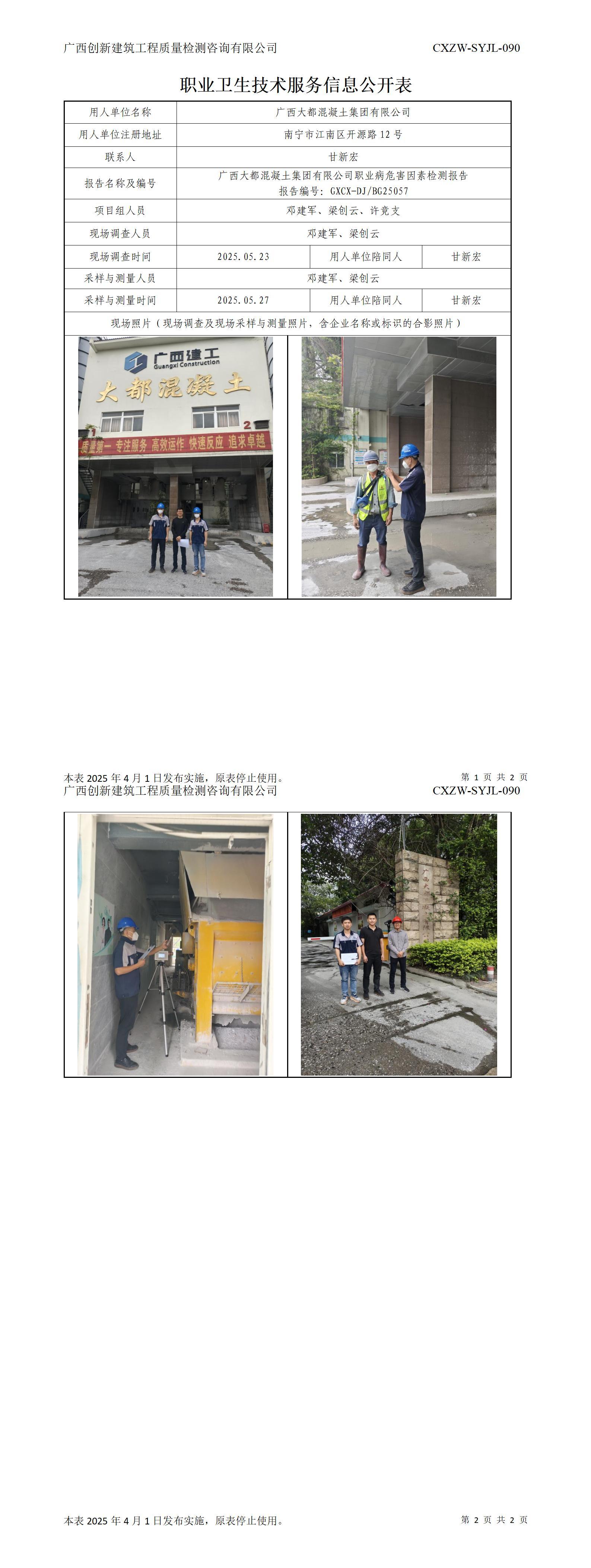 广西新东运矿业有限公司-职业卫生技术服务信息公开表