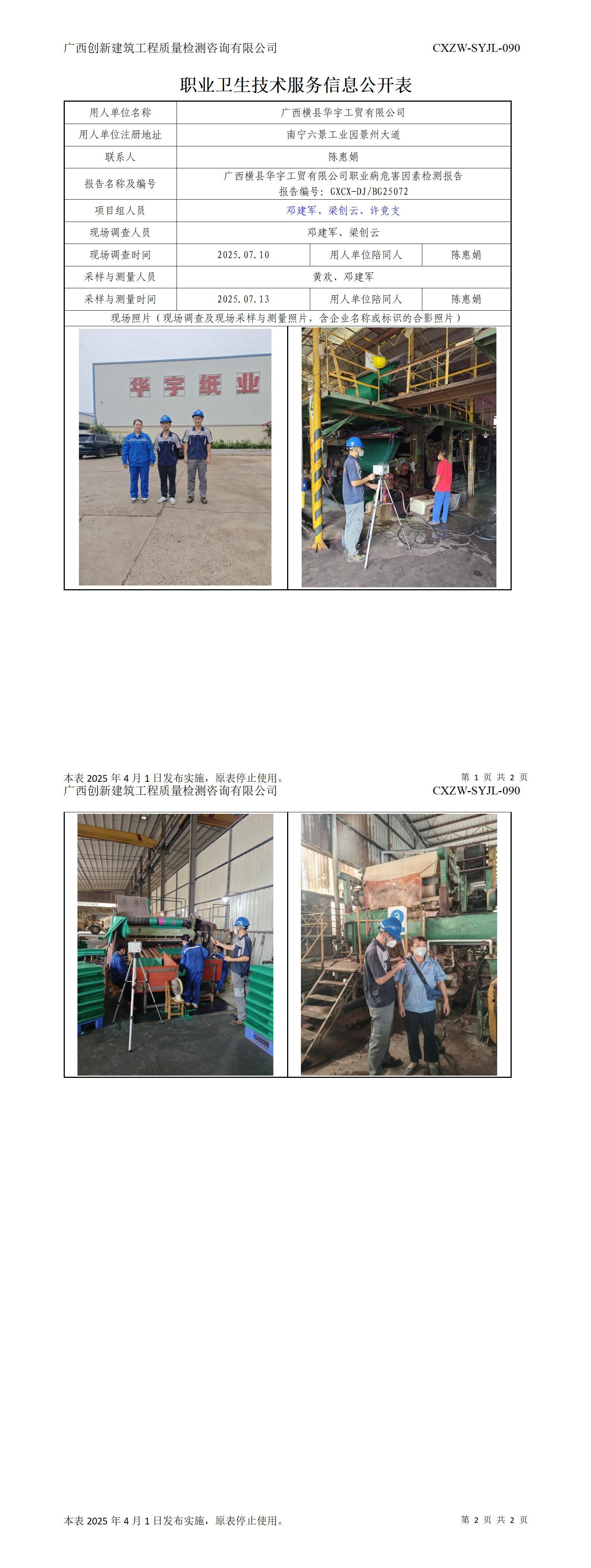 广西华谊能源化工有限公司-职业卫生技术服务信息公开表