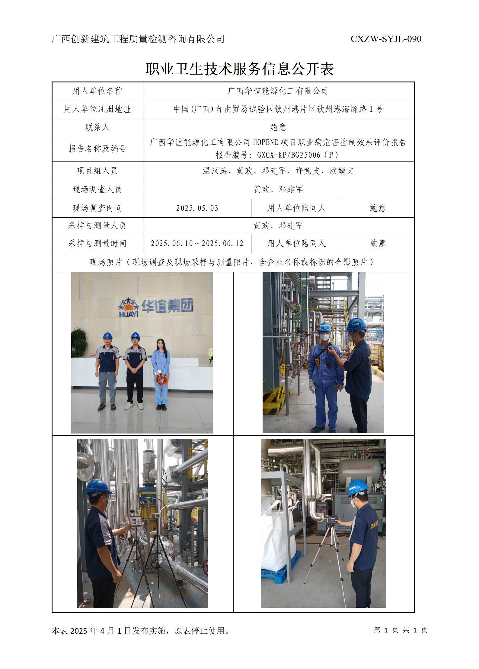 广西横县华宇工贸有限公司-职业卫生技术服务信息公开表