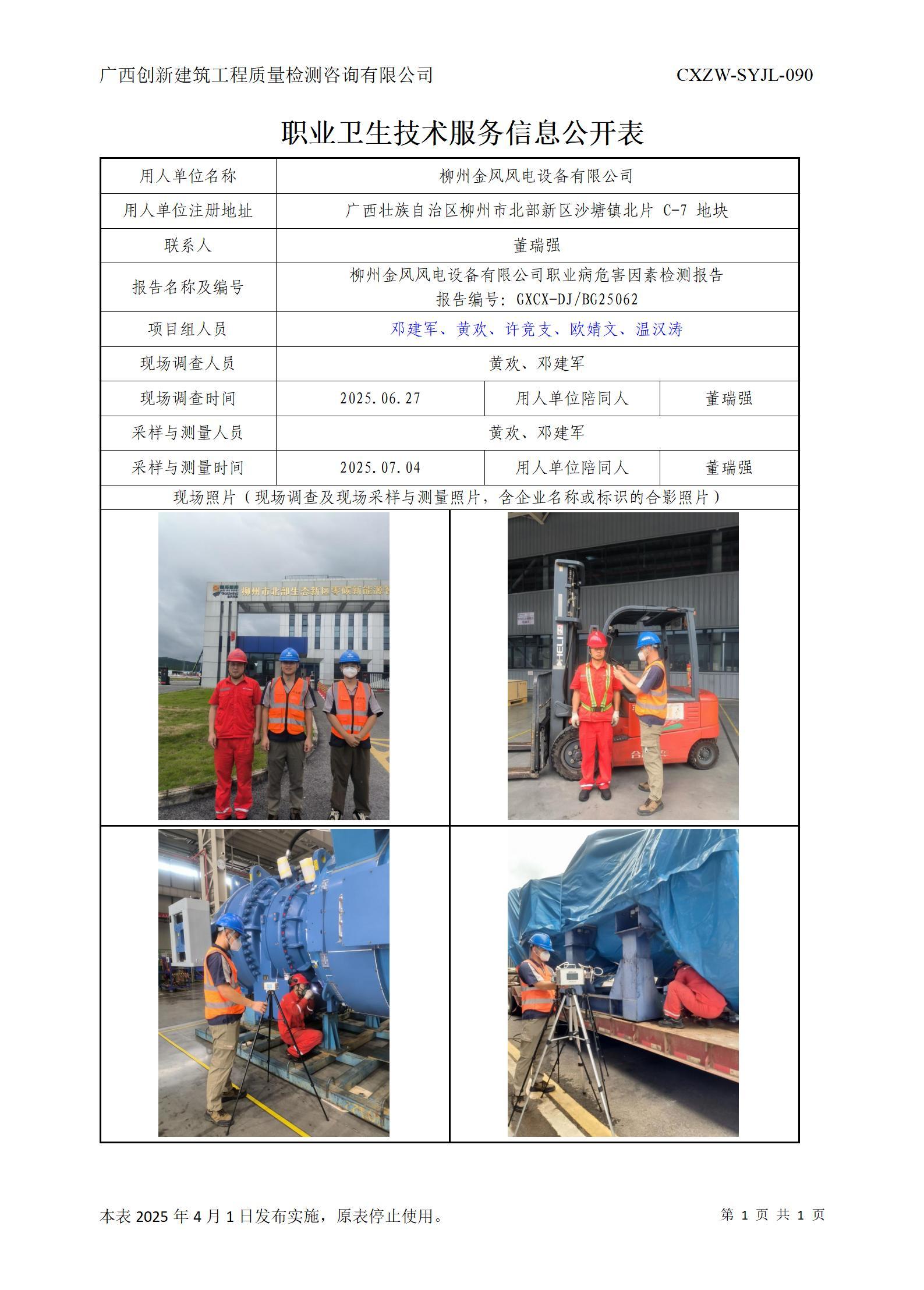 广西凯威电力线路器材有限公司-职业卫生技术服务信息公开表