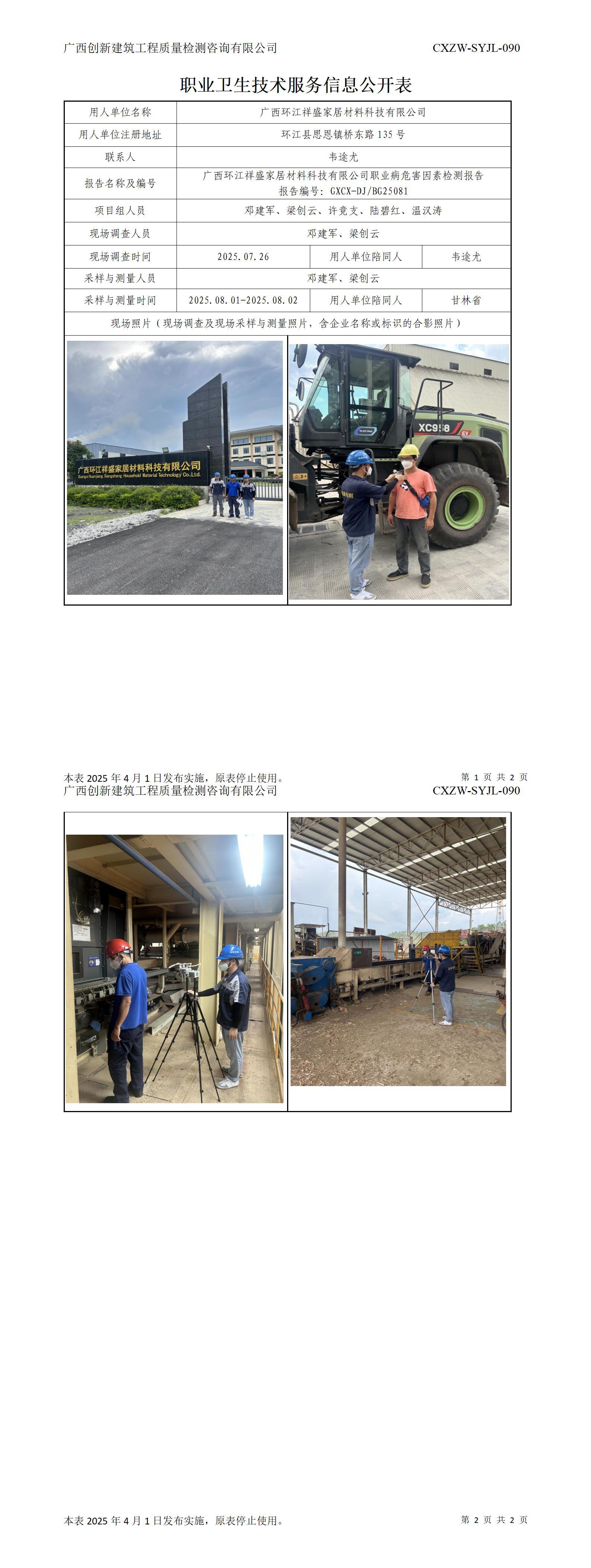 钦州桂柳牧业有限公司职业卫生技术服务信息公开表