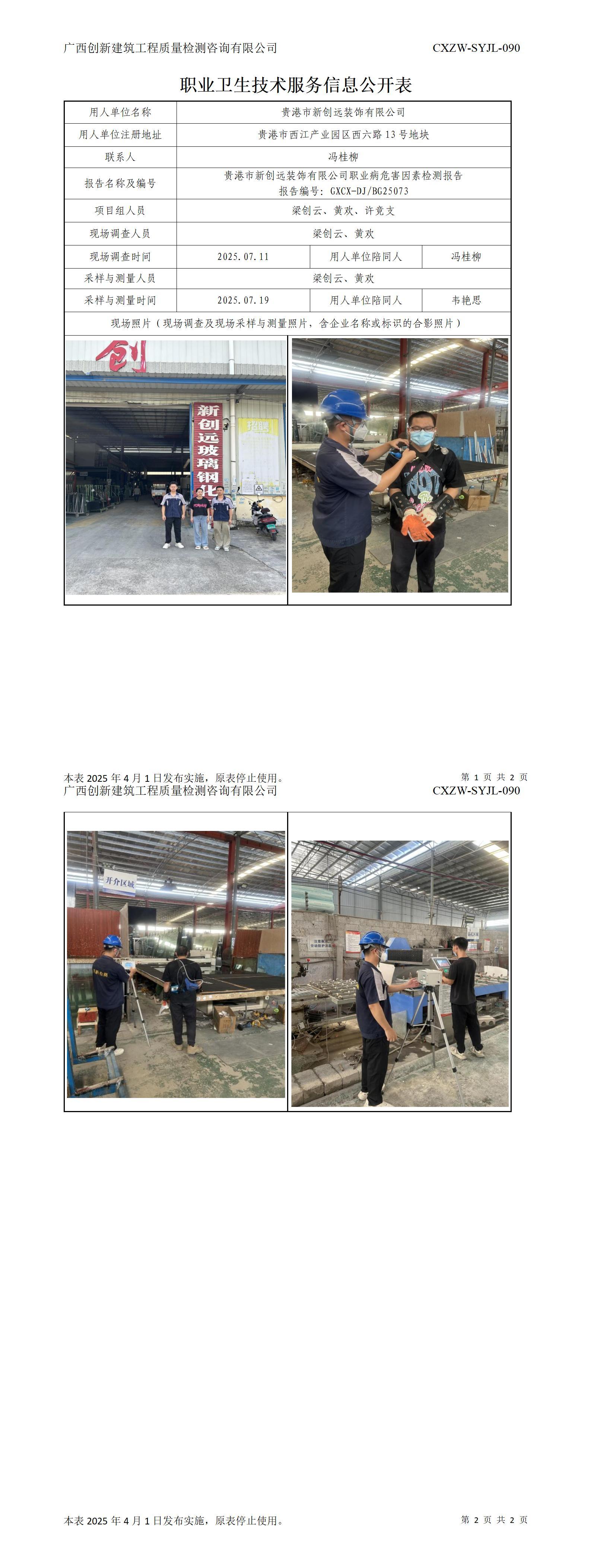 广西环江祥盛家居材料科技有限公司-职业卫生技术服务信息公开表