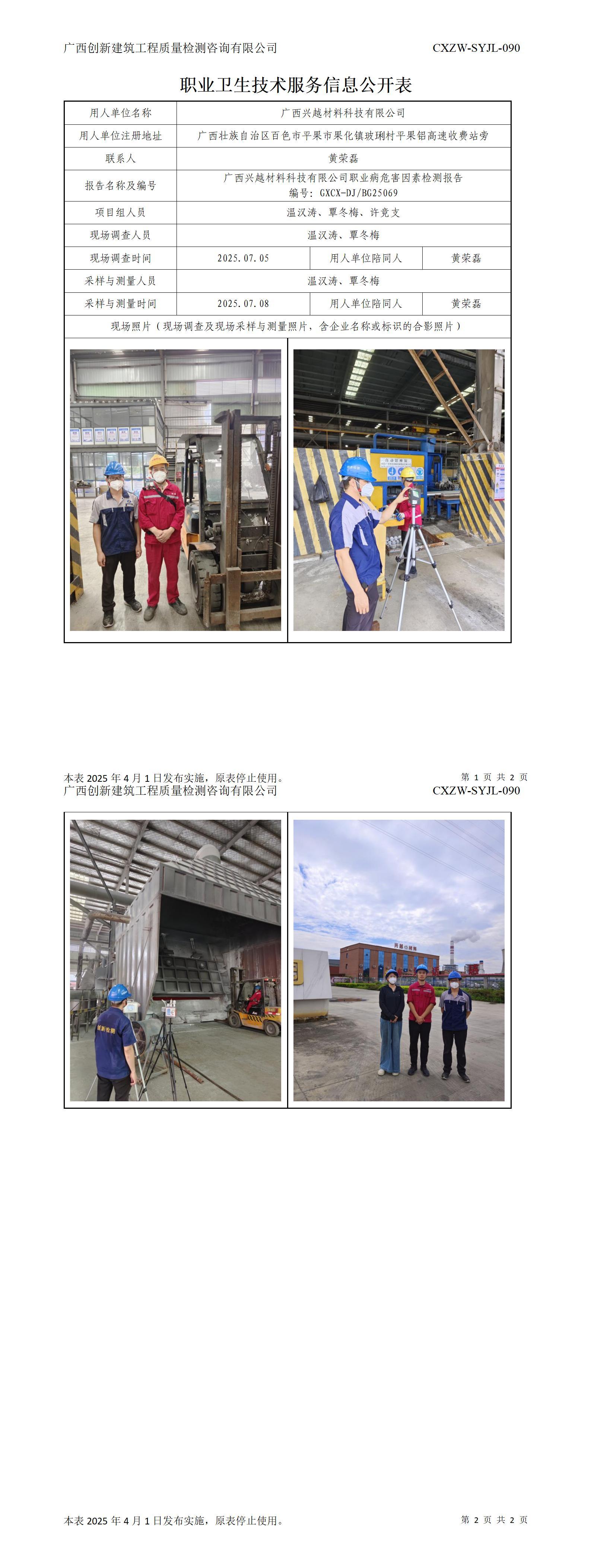 广西翔嵘铝业科技有限公司职业卫生技术服务信息公开表