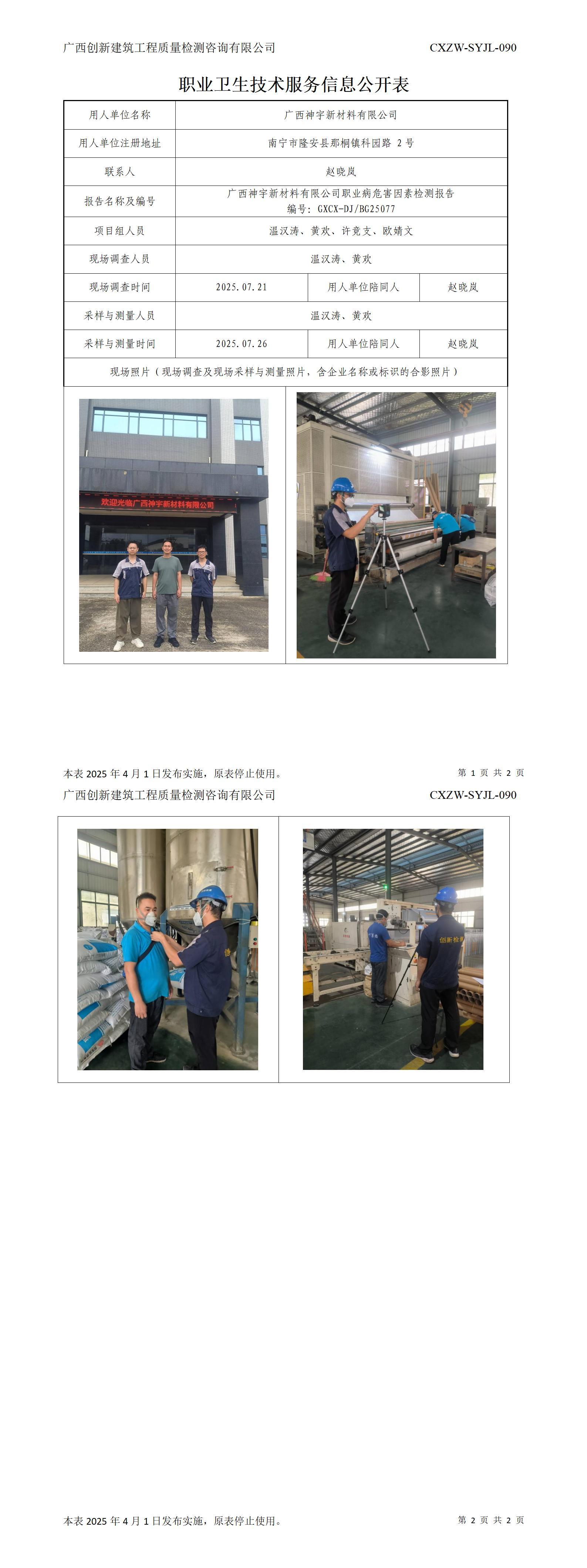 广西兴越材料科技有限公司职业卫生技术服务信息公开表