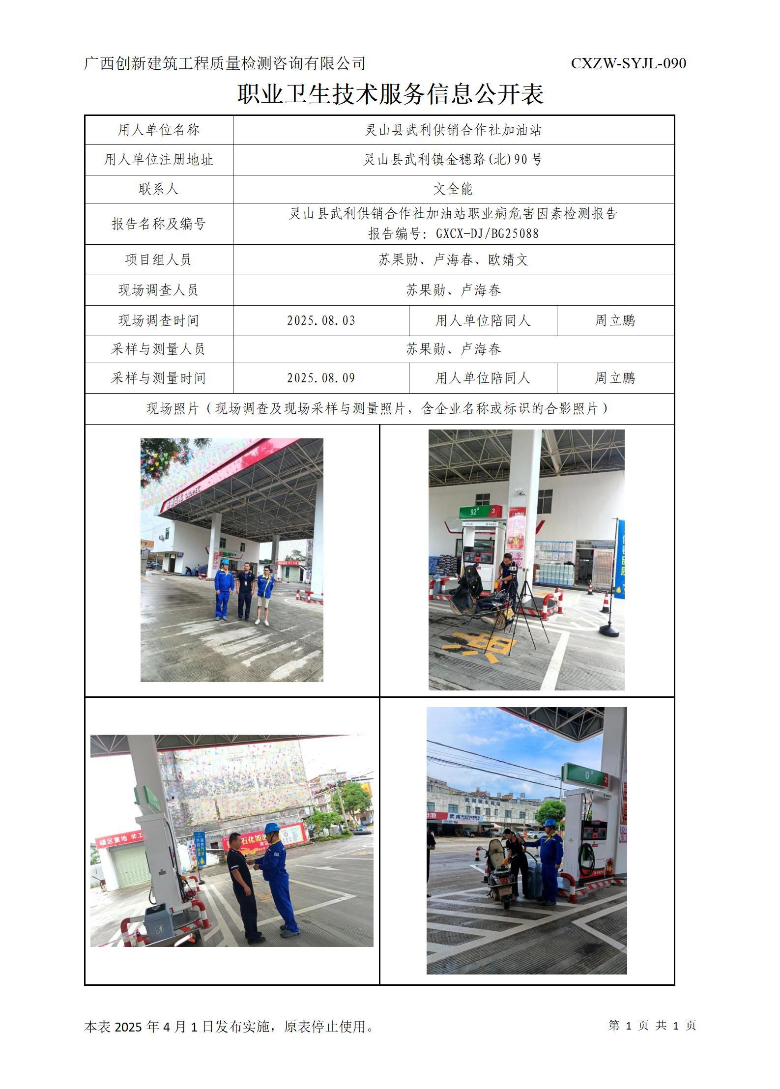 南宁运德石油有限公司邕武路加油站-职业卫生技术服务信息公开表