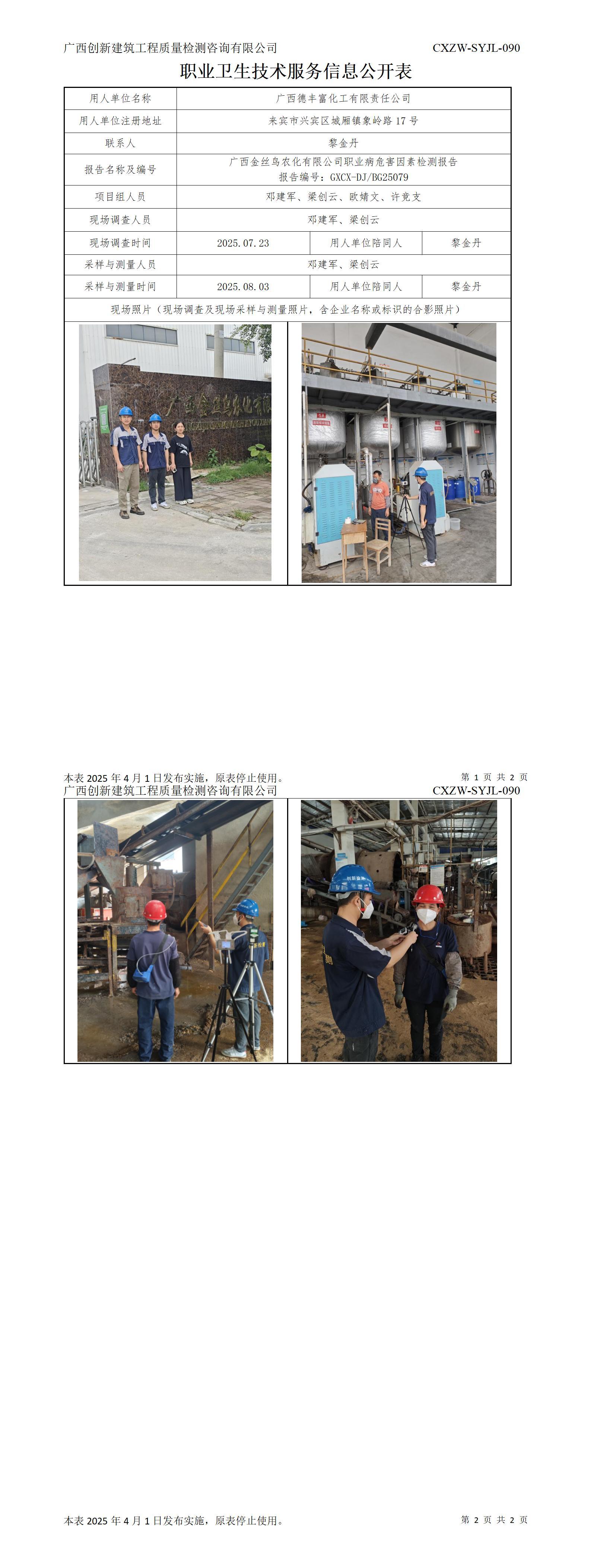 广西德丰富化工有限责任公司-职业卫生技术服务信息公开表
