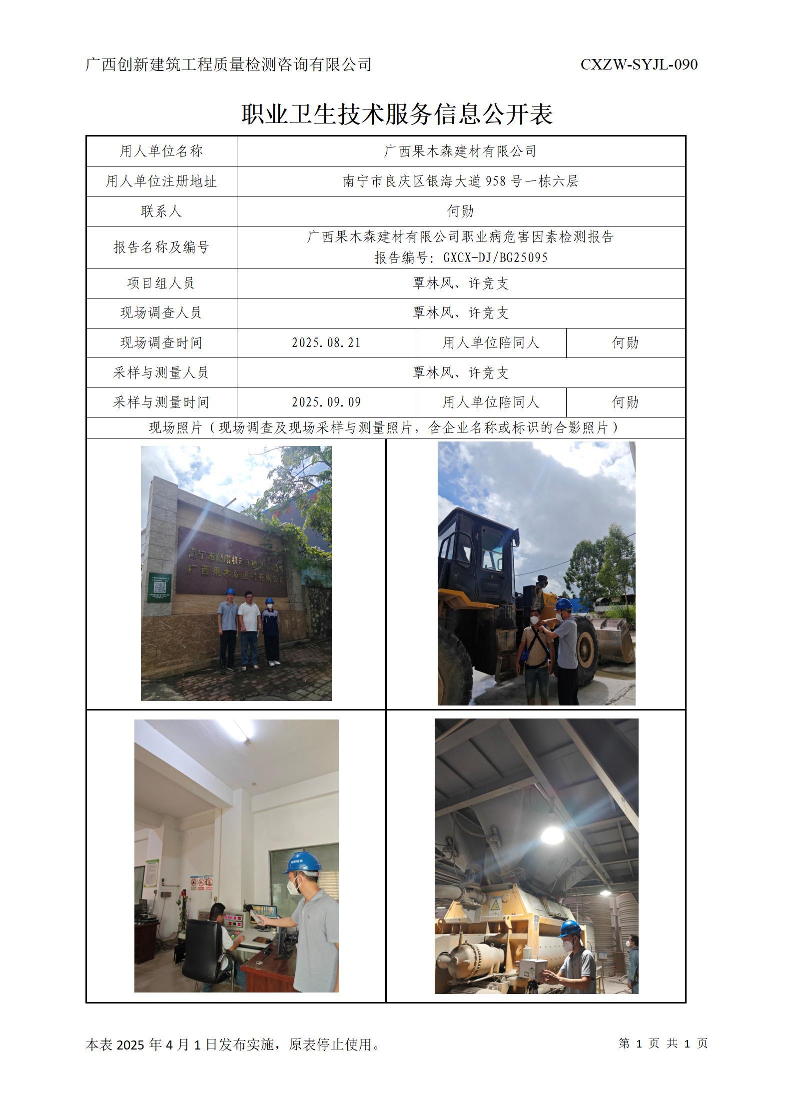 广西源盛矿渣综合利用有限公司职业卫生技术服务信息公开表