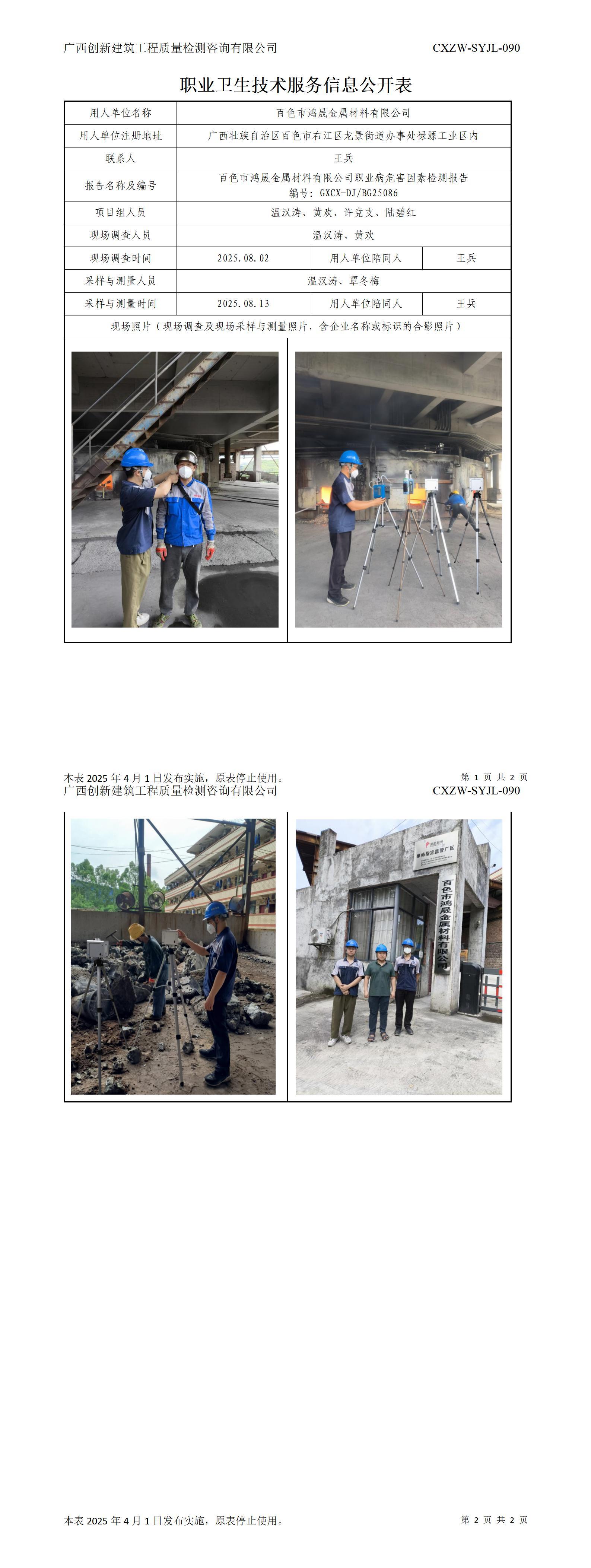 广西源盛矿渣综合利用有限公司职业卫生技术服务信息公开表