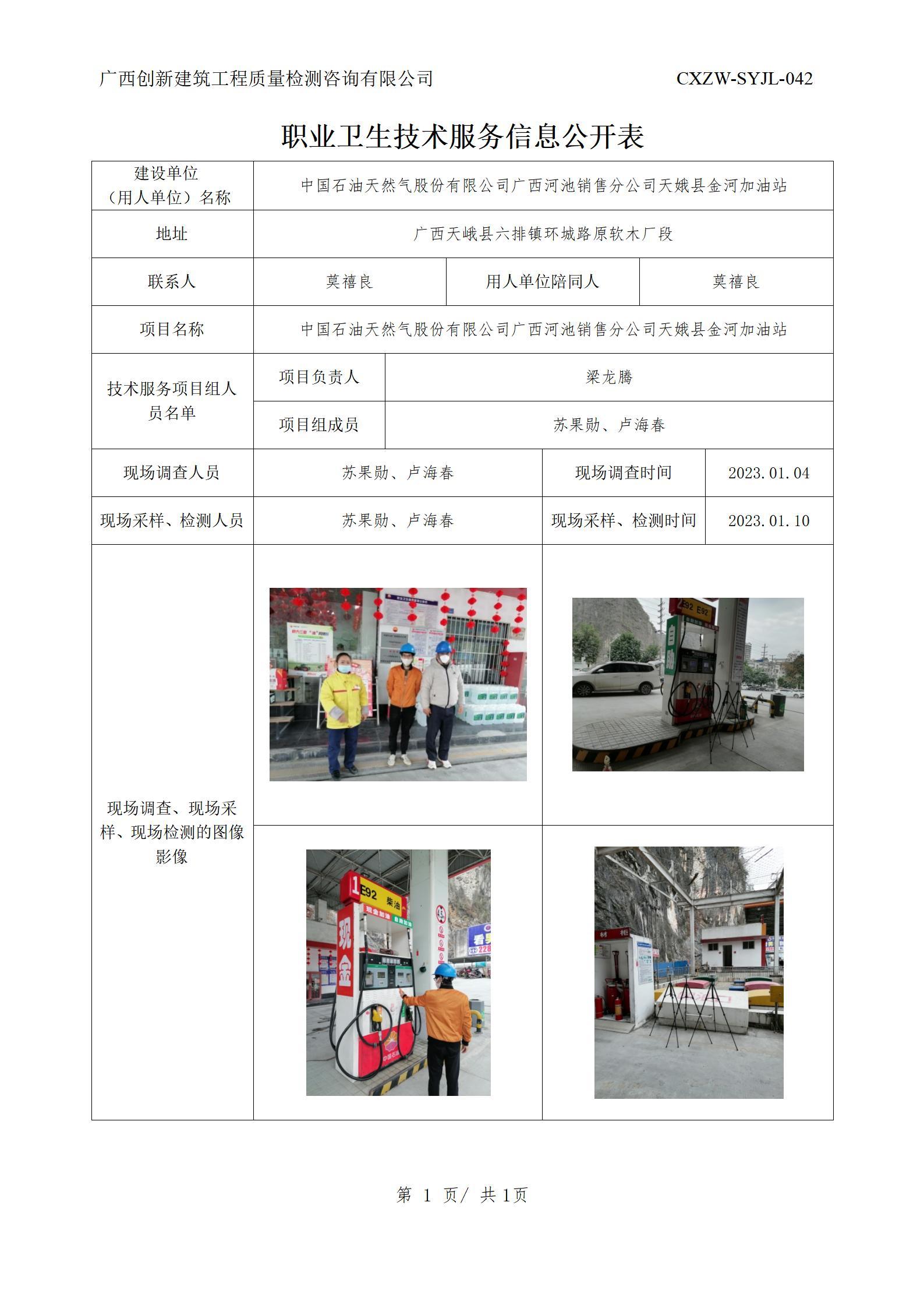 【职业卫生信息公开】中国石油天然气股份有限公司广西河池销售分公司天娥县金河加油站